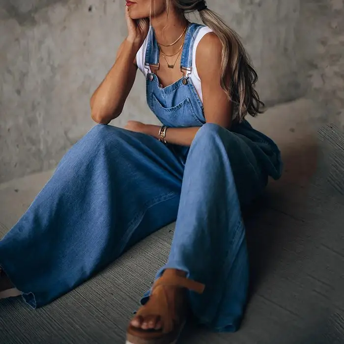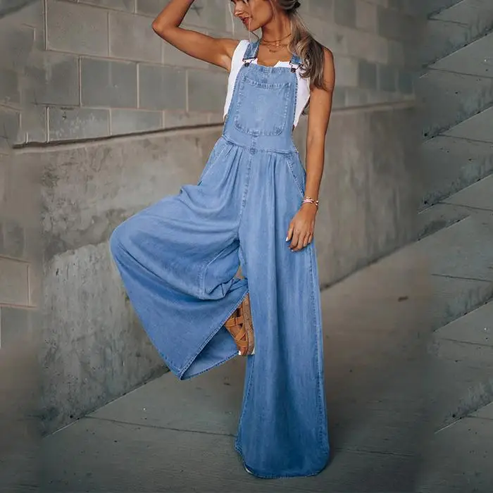 Комбинезон женский джинсовый с широкими штанинами, на осеньлето