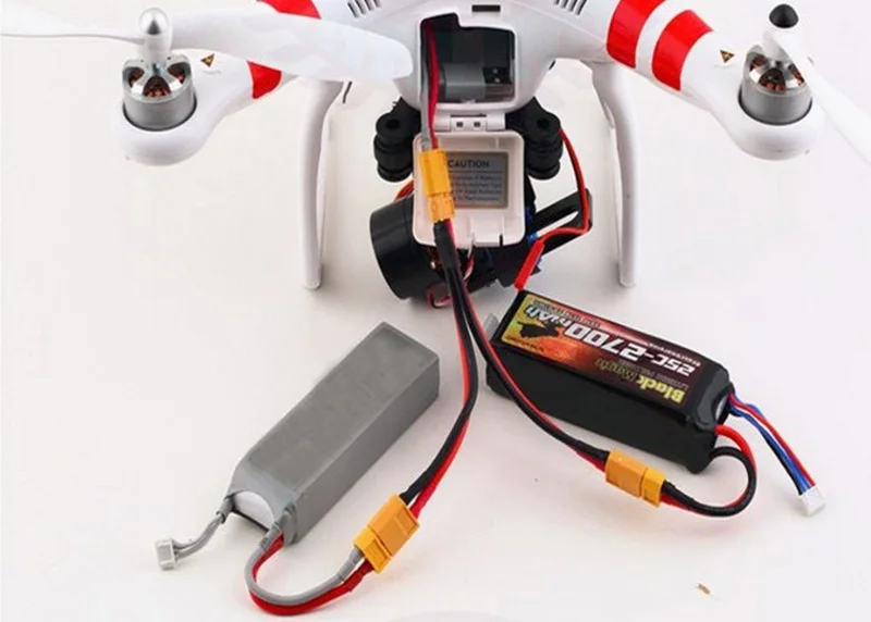 Два набора литиевых аккумуляторов малой емкости XT60 объединены и используются в качестве набора аккумуляторов большой емкости, что требует соответствующей головки преобразования.
