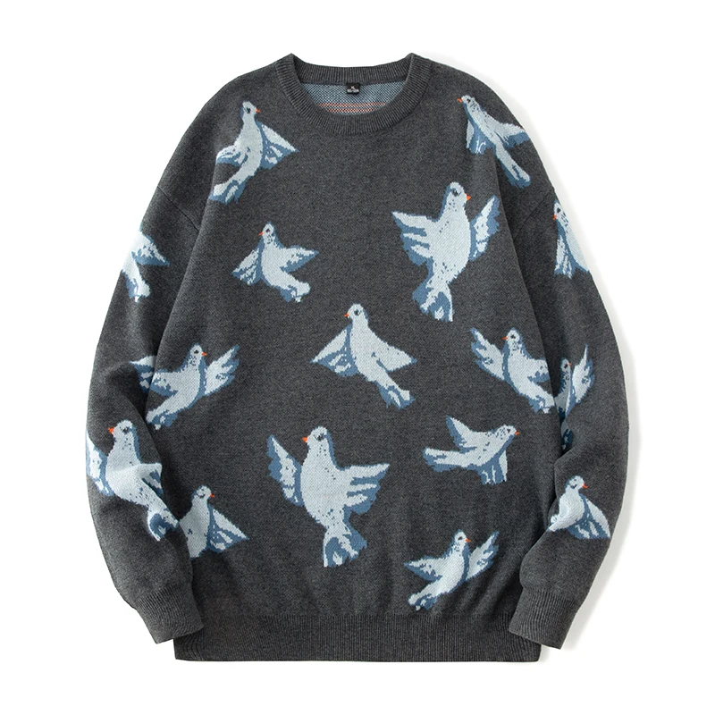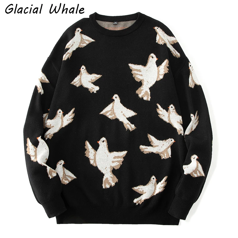 Мужской кардиган Glacial Whale, вязаный мужской зимний модный свитер с голубем мира 2021 года, мужские повседневные негабаритные свитера, черный свитер для мужчин