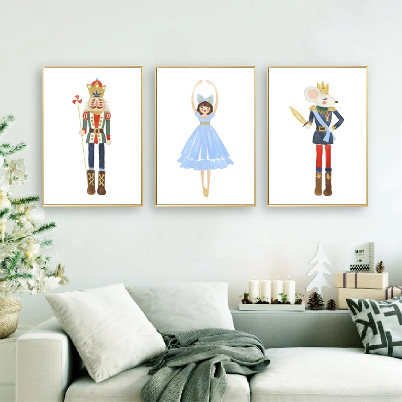 Рождественская Картина на холсте с изображением балерины, солдата, картина с рисунком в скандинавском стиле, мультяшная Настенная картина для домашнего декора