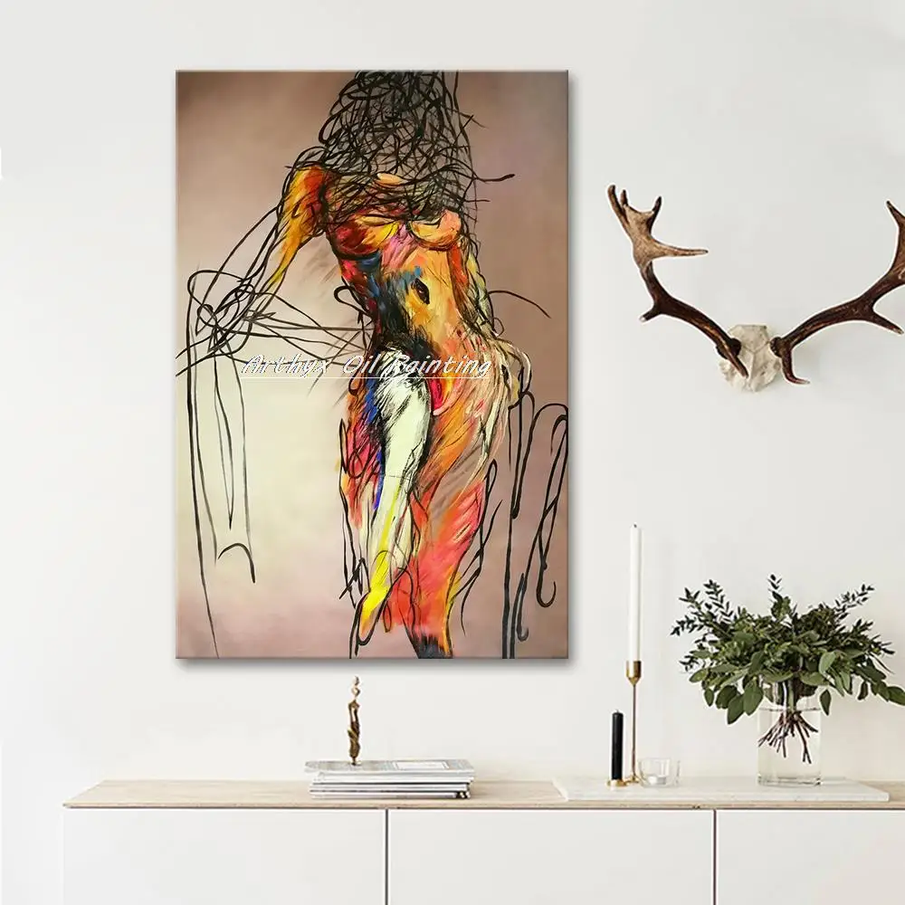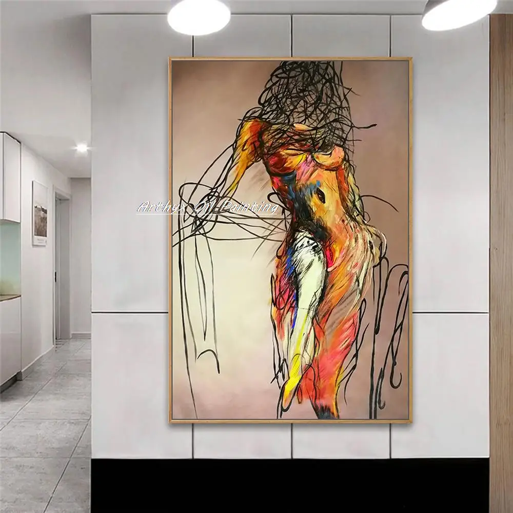Артикс, большая ручная роспись, абстрактная голая женщина, масляная живопись на холсте, Современная фигурка, настенные картины для гостиной, домашний декор