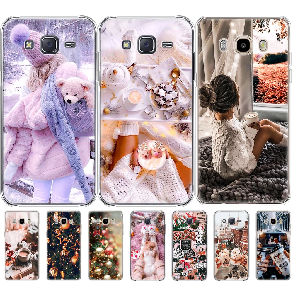 Силиконовый чехол для телефона Samsung Galaxy J1 J2 J3 J5 J7 MINI 2016 2015 prime, чехол-бампер, зимний женский Рождественский vibes coffee