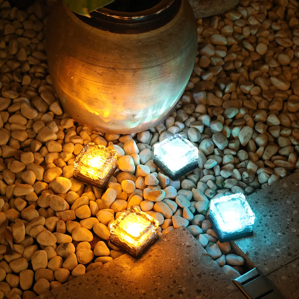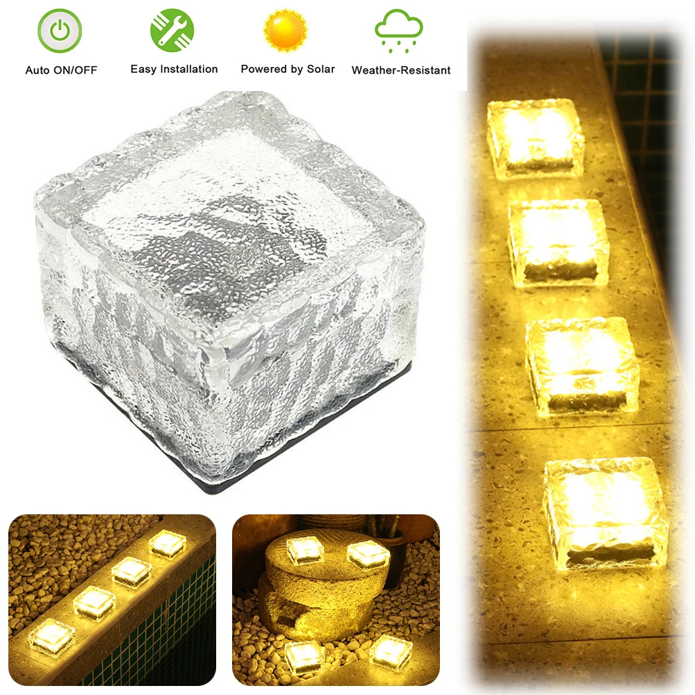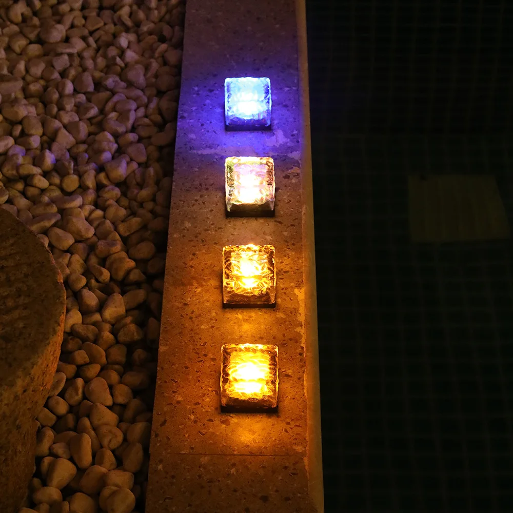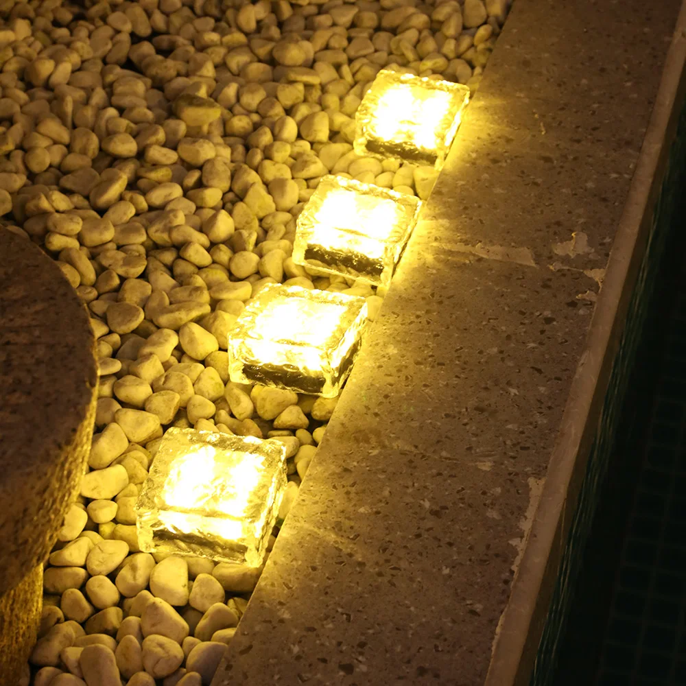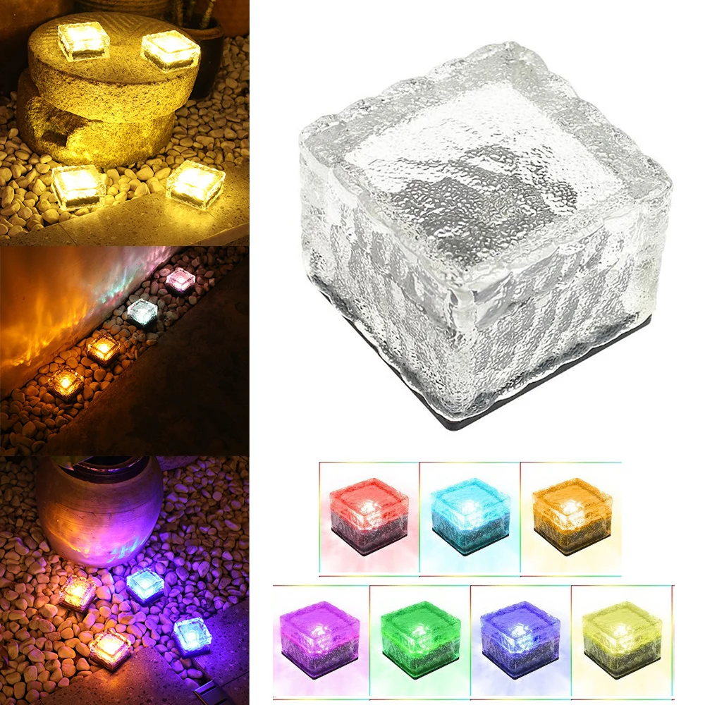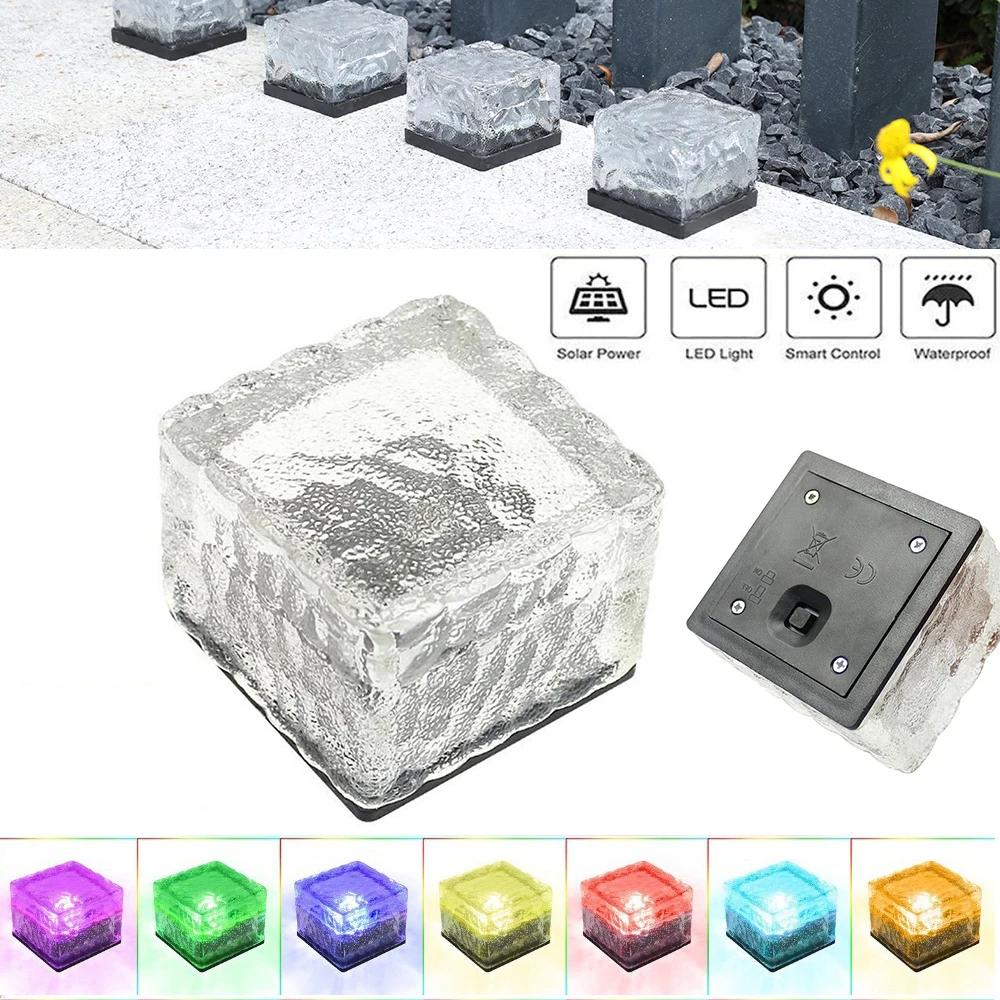 Уличный светодиодный светильник для ледяного кубика, садовое украшение на солнечной батарее, подземный светильник в виде кирпича, Рождественская дорожка, квадратная стеклянная лампа для льда