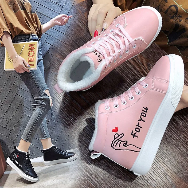 Женские ботильоны на шнуровке, теплые плюшевые кроссовки из ПУ кожи, на вулканизированной подошве, повседневная обувь для ходьбы, для зимы, 2021