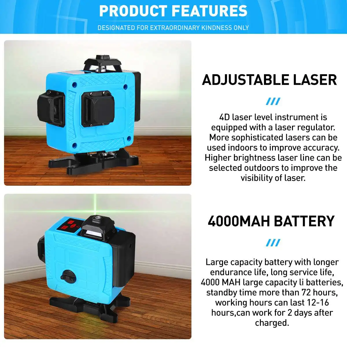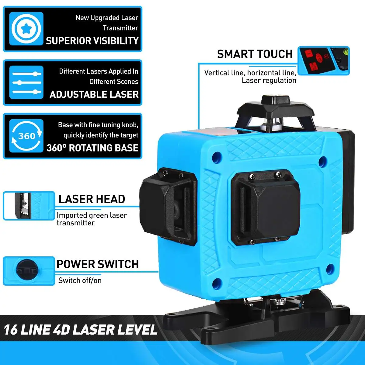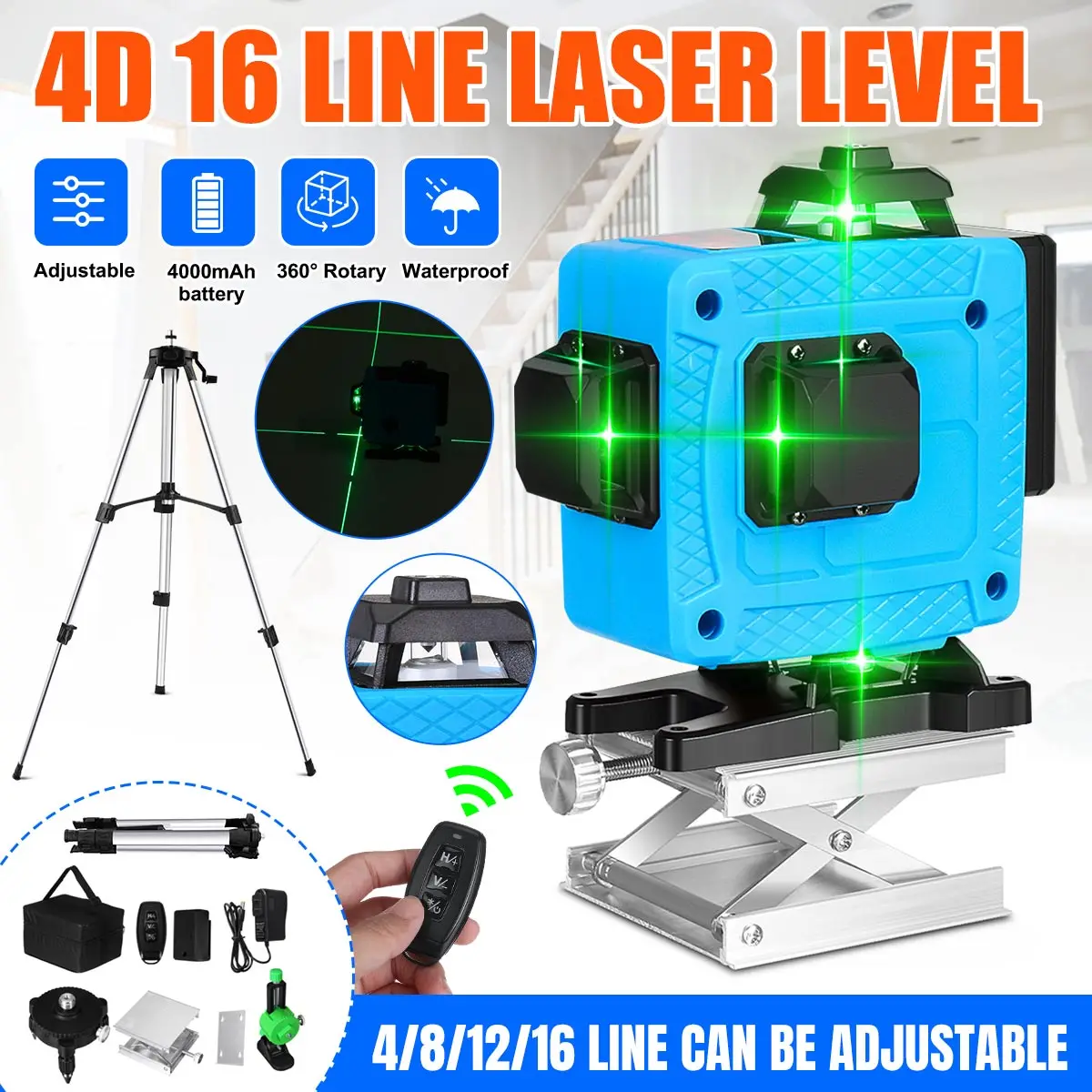 16 линий 360 горизонтальный вертикальный крест 4D зеленый светильник лазерный уровень самонивелирующийся супер мощный лазерный луч