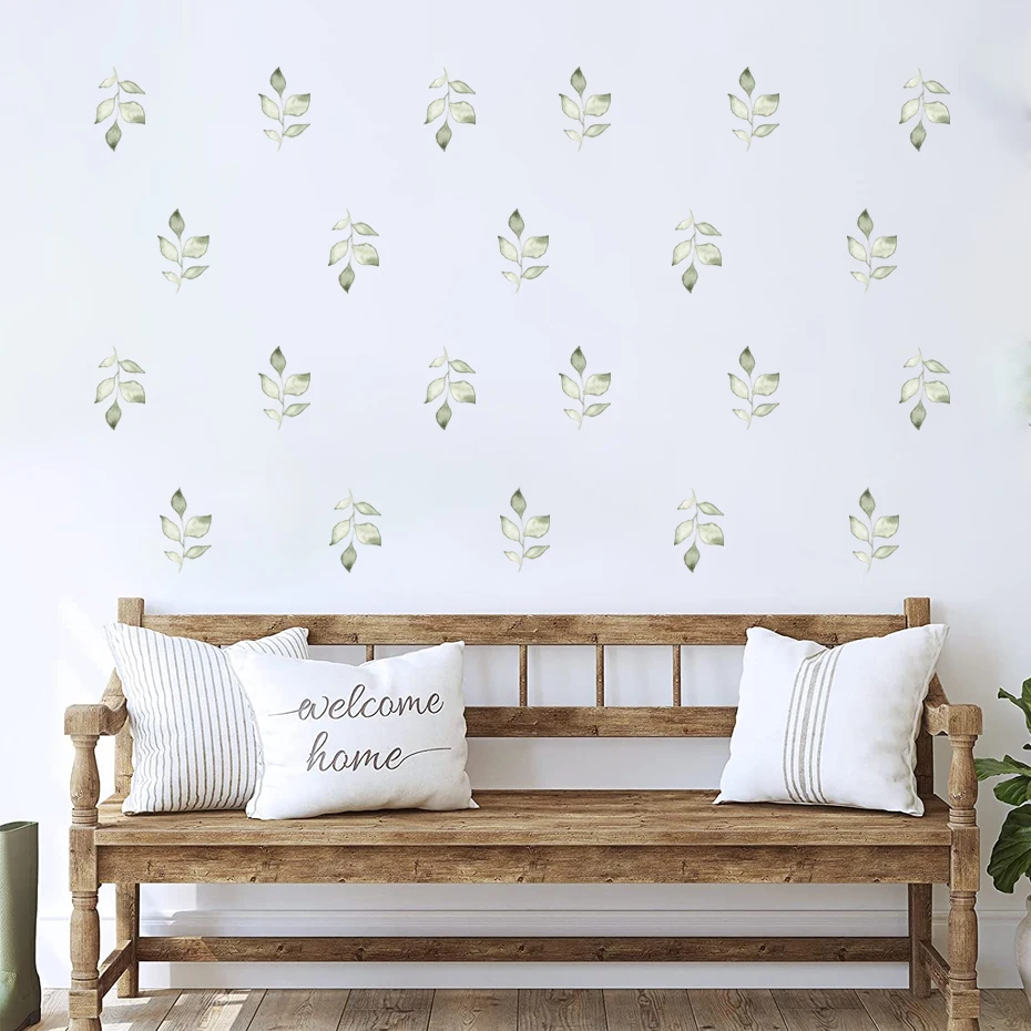 Настенные Стикеры с зелеными листьями в стиле бохо, настенные съемные наклейки для детской комнаты, современное детское интерьерное украшение для дома