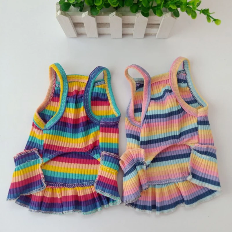 2021 модное Радужное милое платье для собаки Полосатая юбка симпатичное мягкое платье для щенка одежда для питомца аксессуары для питомцев универсальные весенне-летние