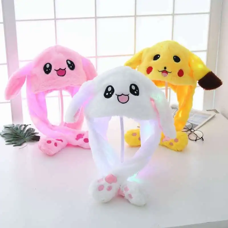 Плюшевая шапка Пикачу из аниме Покемон, плюшевые уши кролика, забавная Милая мультяшная шапка с мигающими ушками, подвижные искусственные игрушки