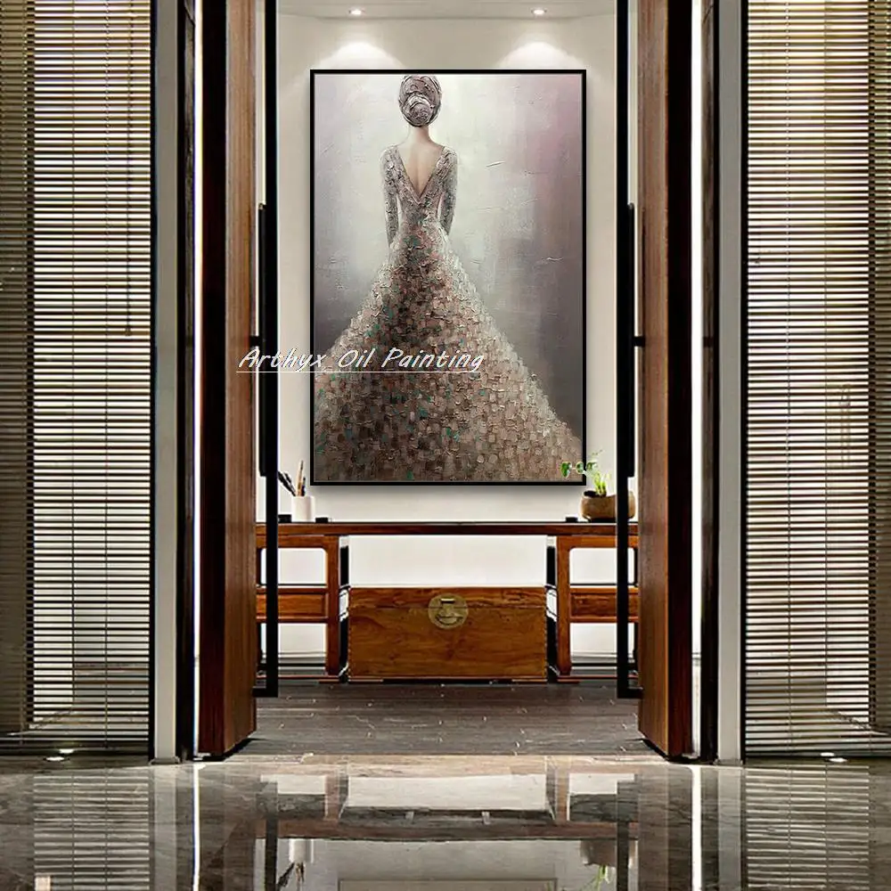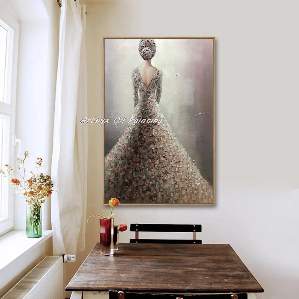 Arthyx ручная роспись, абстрактное платье, девушка, картина маслом на холсте, Современная фигурка, Настенная картина для входа и украшения дома