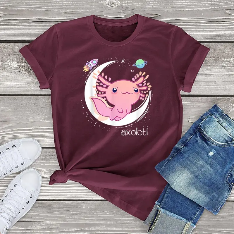 Kawaii японская аниме футболка женская одежда забавные космические Axolotl женские Графические футболки винтажные негабаритные мужские XS-3XL с коротким рукавом