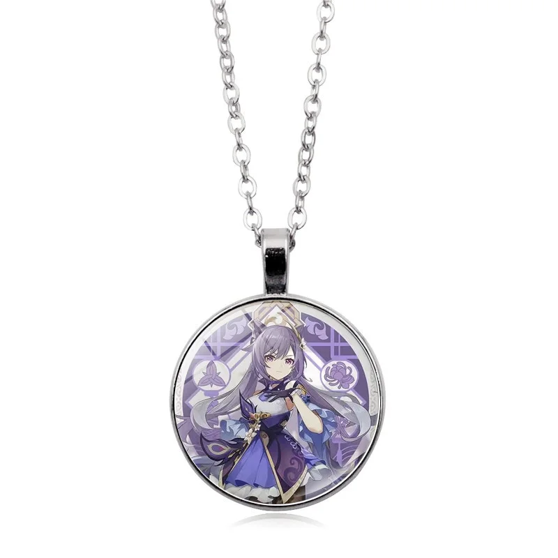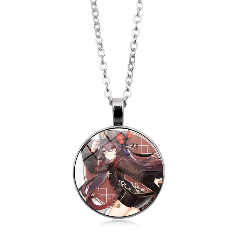 Ожерелье с аниме-фигуркой Genshin Impact, Zhongli, бальчик, Venti, Klee, Keqing, Qiqi, стеклянный кабошон, подвеска, чокер, винтажное ожерелье с цепочкой