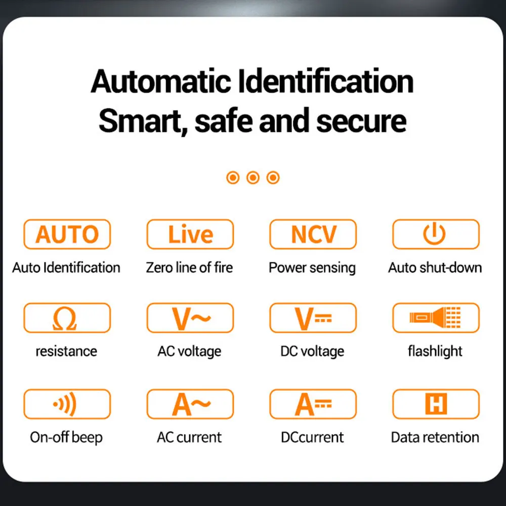Многофункциональность: измерение напряжения, тока, сопротивления, емкости, частоты, температуры и т. д.Экран дисплея: большой экран, высокая контрастность, четкое отображение всех символов.Широкий спектр применения: с функцией подсветки и функцией фонарика, подходит для работы в темных условиях.Функция магнитного притяжения: приклейте мультиметр к металлической поверхности, не беспокоясь о падении.Простая Работа: высокая точность, функция хранения данных, легче считывать результаты измерений.