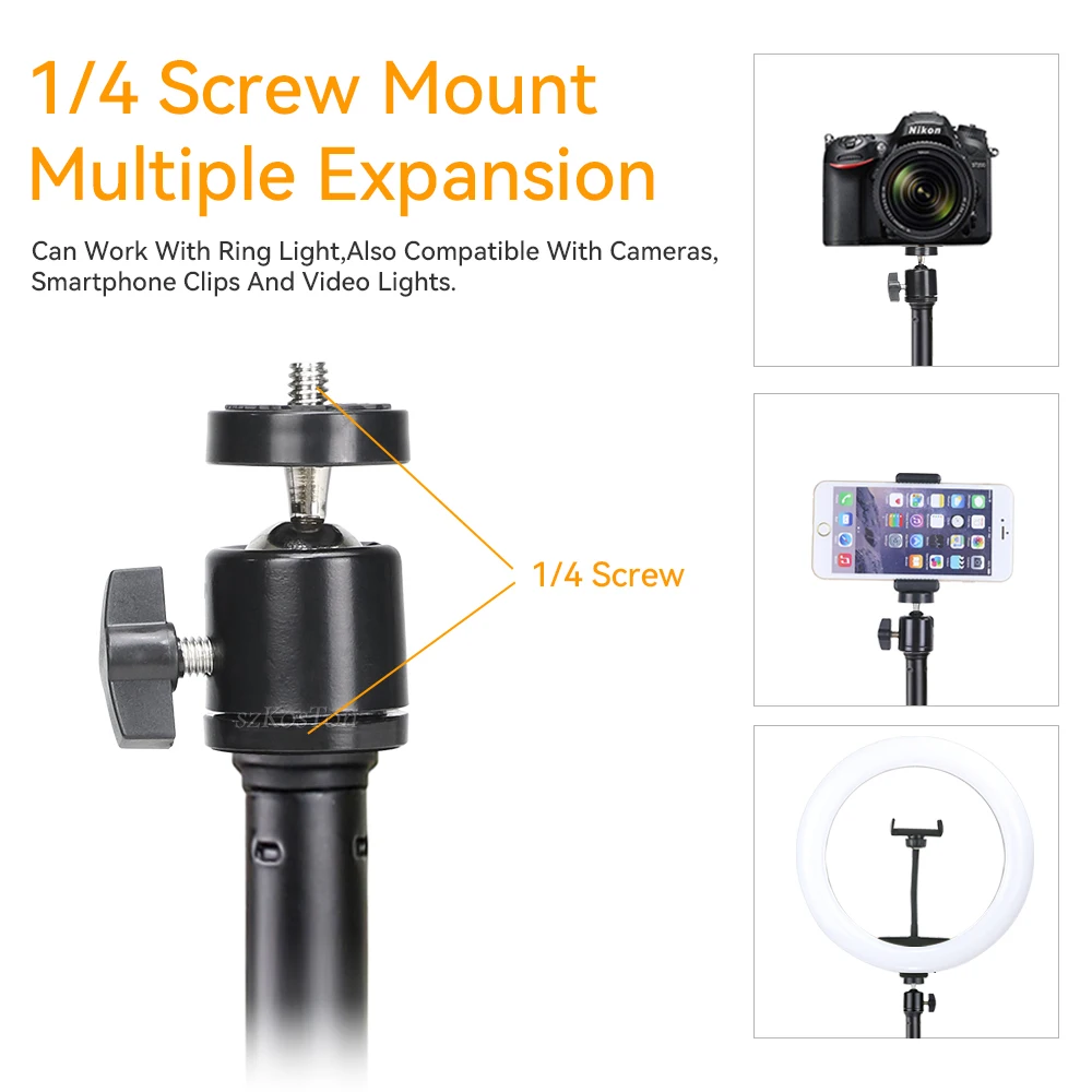 Feautres:Тип 1. Настольная стойка:A: может быть установлен на рабочем столе (до 1,8 дюйма) с помощью тяжелых c-зажим, Экономия до имеют крайне важное значение и место на рабочем столе.B: применимый и универсальный, Настольный зажим Стойка со стандартным 1/4 "винтом может быть установлен для большинства камер s и светильник s, которые имеют 1/4" адаптер, такие как кольцевой светильник, Dslr камера, экшн-камера, видео светильник, видеокамера, панельный светильник, мини-проектор. 360 градусов вращающийся шарнир шаровая Головка идеально подходит для регулировки угла.