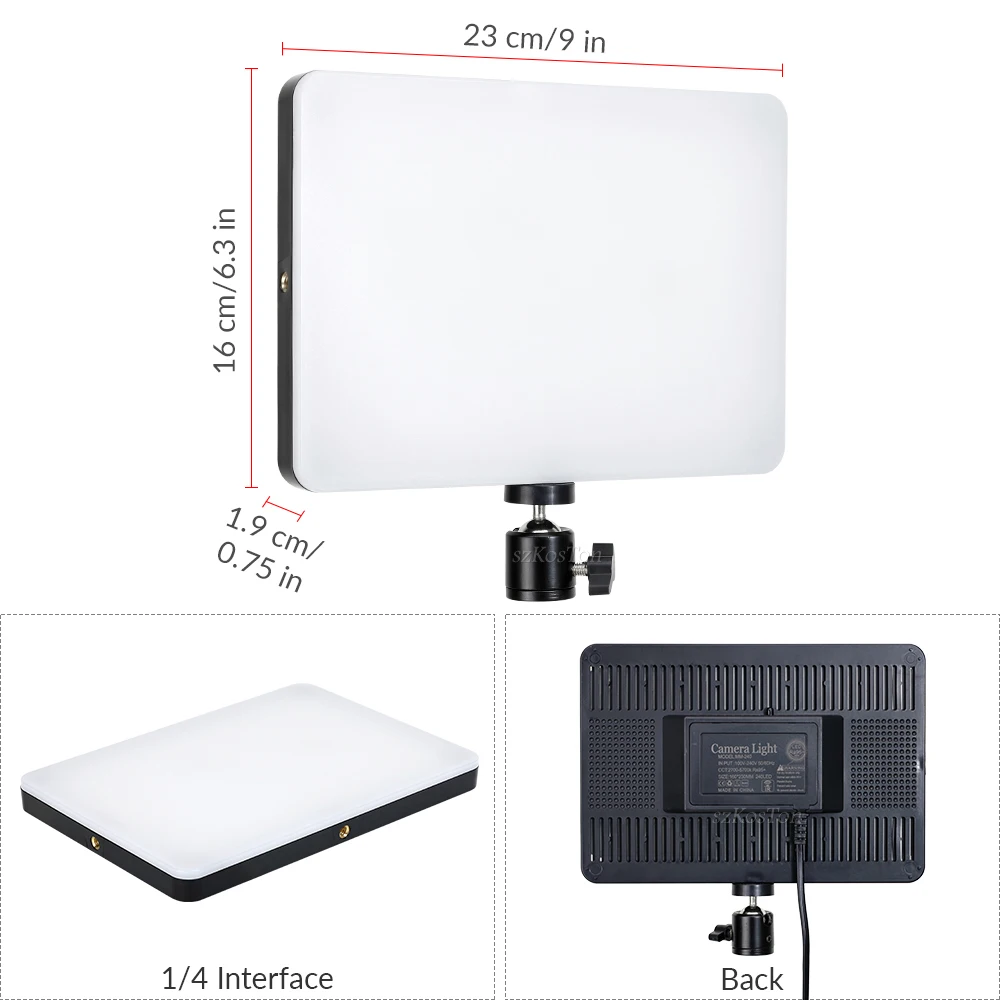 Тип 5. Светодиодный светильник с регулируемой яркостью:Особенности:A. С его светильник вес и прочная конструкция, вы можете носить этот светильник с собой, куда бы вы ни отправились.B. Особенности с 2 отдельными ручками на задней панели для регулировки цветовой температуры и яркости.C. Белый фильтр может смягчить светильник и повысить тонус кожи в портретной фотографии.D. Регулируемый кронштейн делает светильник под разным углом для лучшей съемки. 360 ° горизонтальное вращение, 180 ° Наклон вверх и внизЕ. 4 листа двери могут обеспечить светильник Управление. Держите рассеянный светильник из Другое области предмета от отражающие в Камера объектив и не вызывая расклешенного кроя.F.CRI 95 + может действительно восстановить цвет продукта или портретаG:Характеристики:Светодиодные бусины: 600CRI≥ 95Мощность: 40 ВтЛюмен: 4300 лмВходное напряжение: 12-14 вЦветовая температура: 3200K-5600K (плавающее значение 900K)Угол освещения: 120 °Диапазон затемнения: 0-100%Светильник Размер панели: 21*12*2,5 смИсточник питания:Адаптер питания ЕС + конвергентная вилка СШАNP-F570 / NP-F970 / NP-F770 литий-ионный аккумулятор (не входит в комплект)Напряжение: 110-240 В