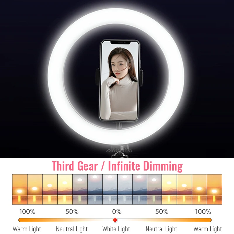 Тип 3,33 см кольцевой светильник:А. 10 режимов яркости.B.3 цвета, плавный затемняющий светильник, белый светильник, теплый светильник, мягкий светильникС. В студии, чтобы заполнить светильник фото, портрет автоспуска заполняющий светильник.D .. фотостудия кольцевой светодиодный светильник Usb заглушка заполняющий светильник.E. Подходит для многих социальных, таких как создание, видео в режиме реального времени, студийный светильник, фотография. F.Спецификация:Внешний диаметр: 33 смВнутренний диаметр: 25 смЦветовая температура/Теплый светильник: 2800-3200KЦветовая температура/белый светильник: 4800-5200KКоличество лампочек: 168 бусинCRI: 80Режим питания: интерфейс USBНапряжение: 2,9-3,0 VСветильник Мощность: 11 ВтЛюмен: 800 лмМатериал: АБС-пластикПримечание:1. Примечание: usb-порт для зарядки требует 5 В/2A питания или использовать QC 3,0 зарядный разъем. В противном случае это повлияет на функцию продукта.