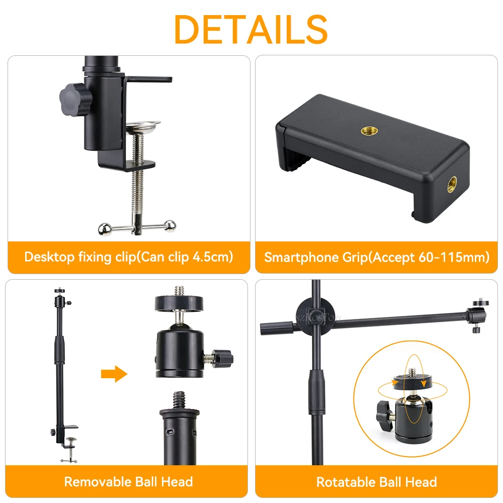 Многофункциональная настольная подъемная стойка с светодиодный жимом, светодиодная кольцесветильник для DSLR-камеры, настольная подставка для съемки сверху, студийная видеосъемка