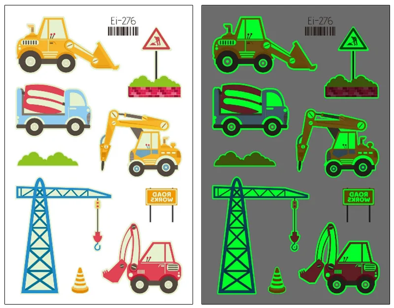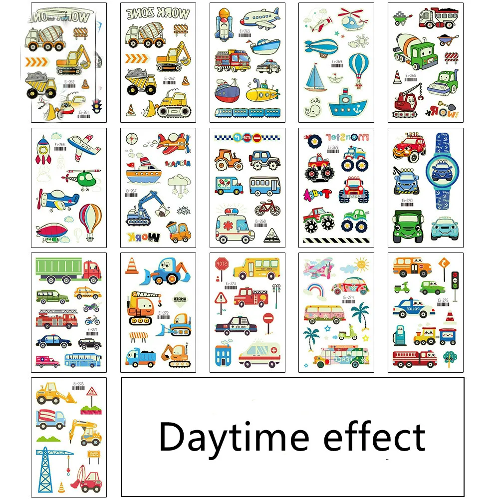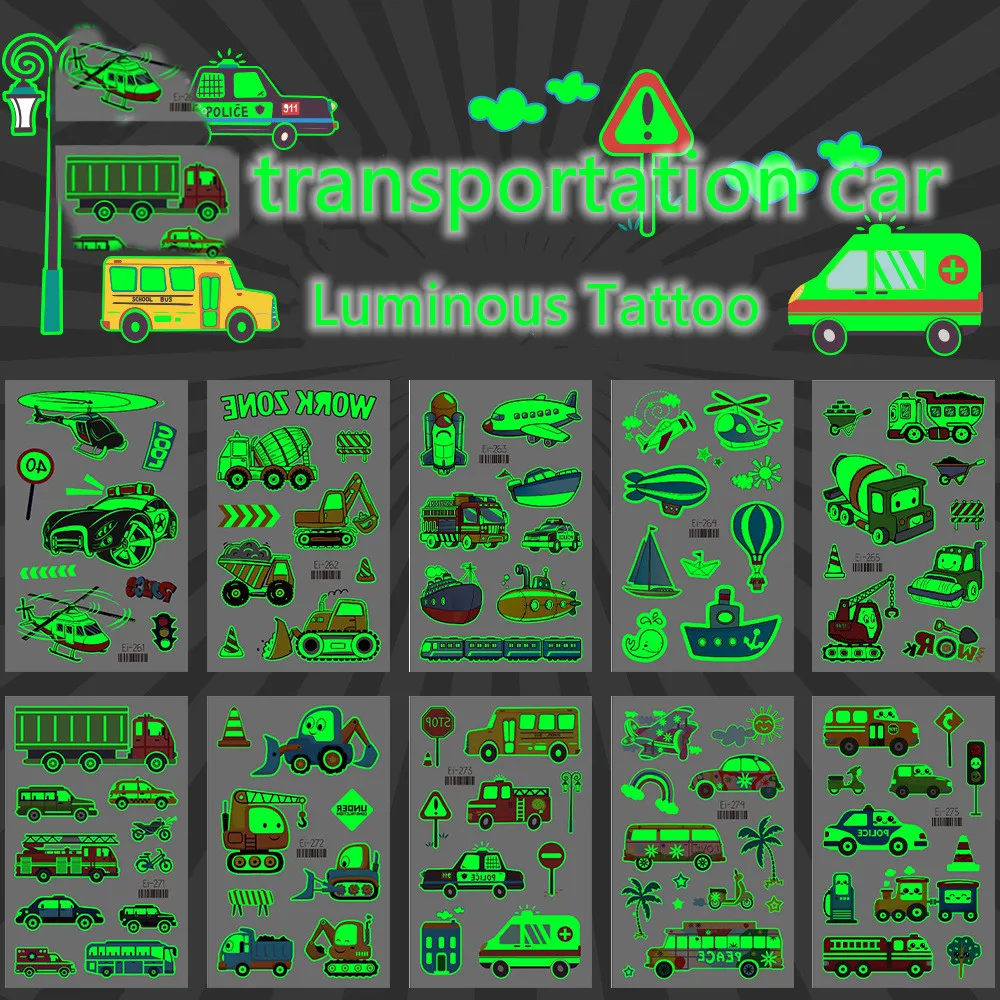 Наклейки для татуировок светящиеся Детские временные поддельные Мультяшные транспортные автомобильные татуировки светящаяся паста на лице рука ноги для детей боди-арт