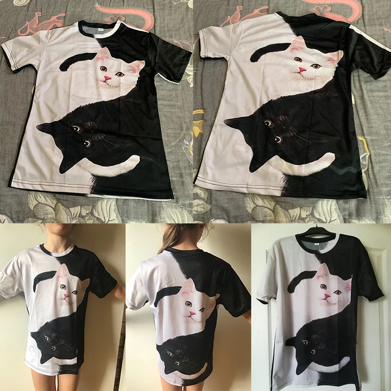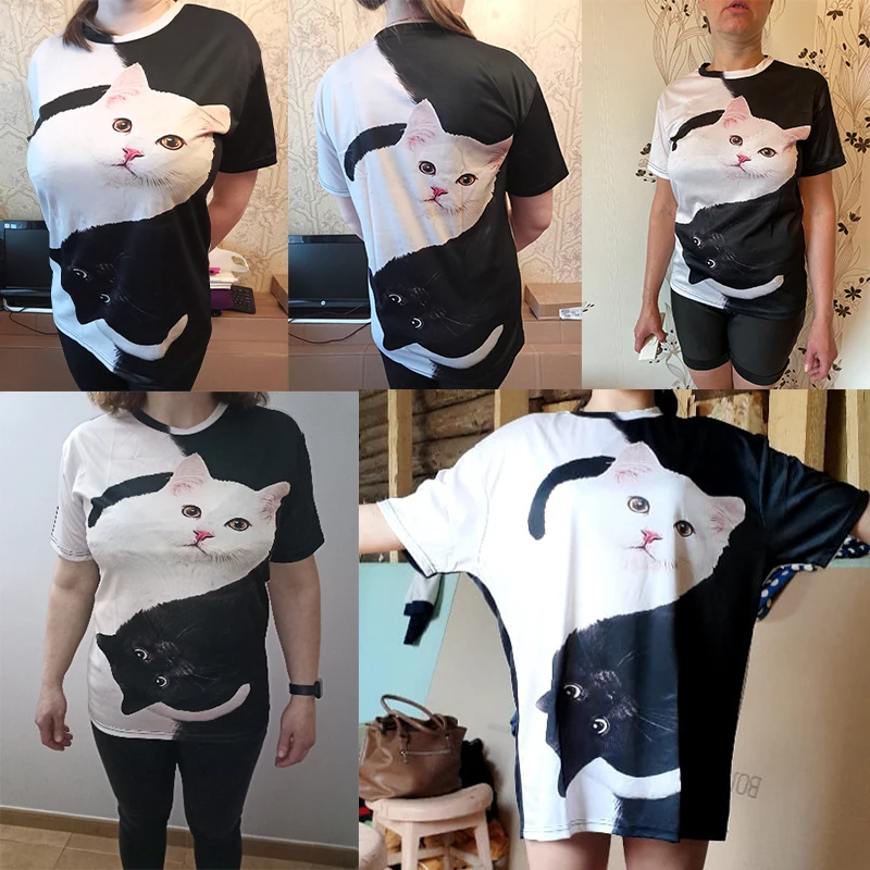 Женская футболка с коротким рукавом и круглым вырезом, черная или белая футболка с 3D-принтом кота в стиле Харадзюку, 2022