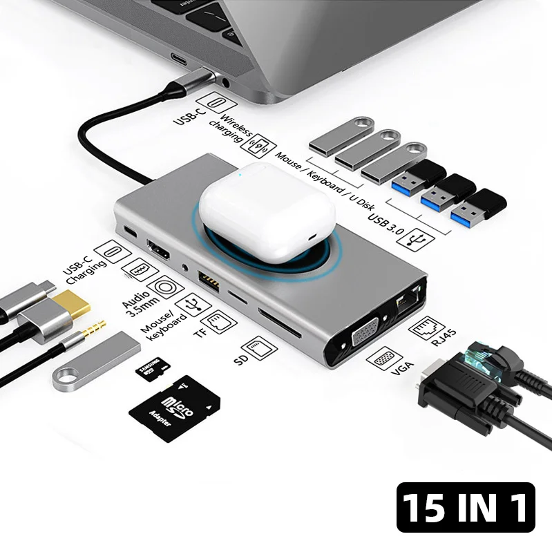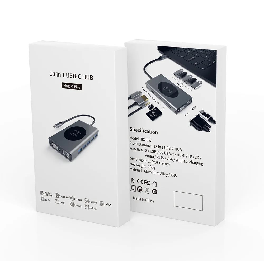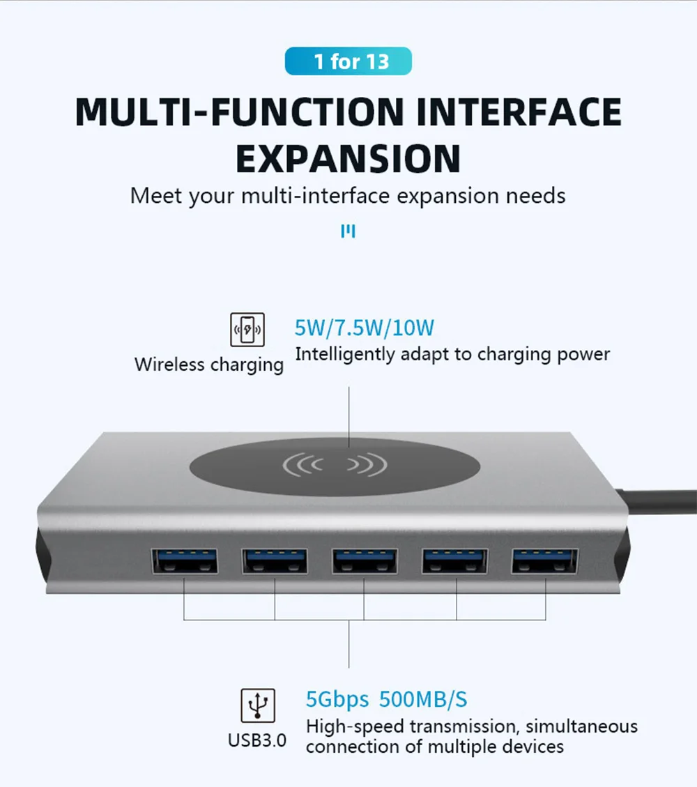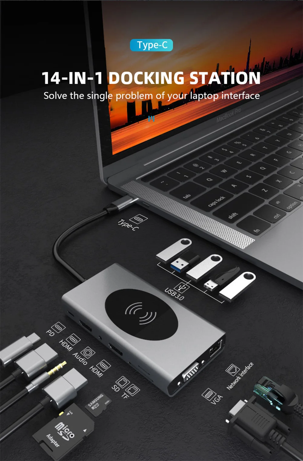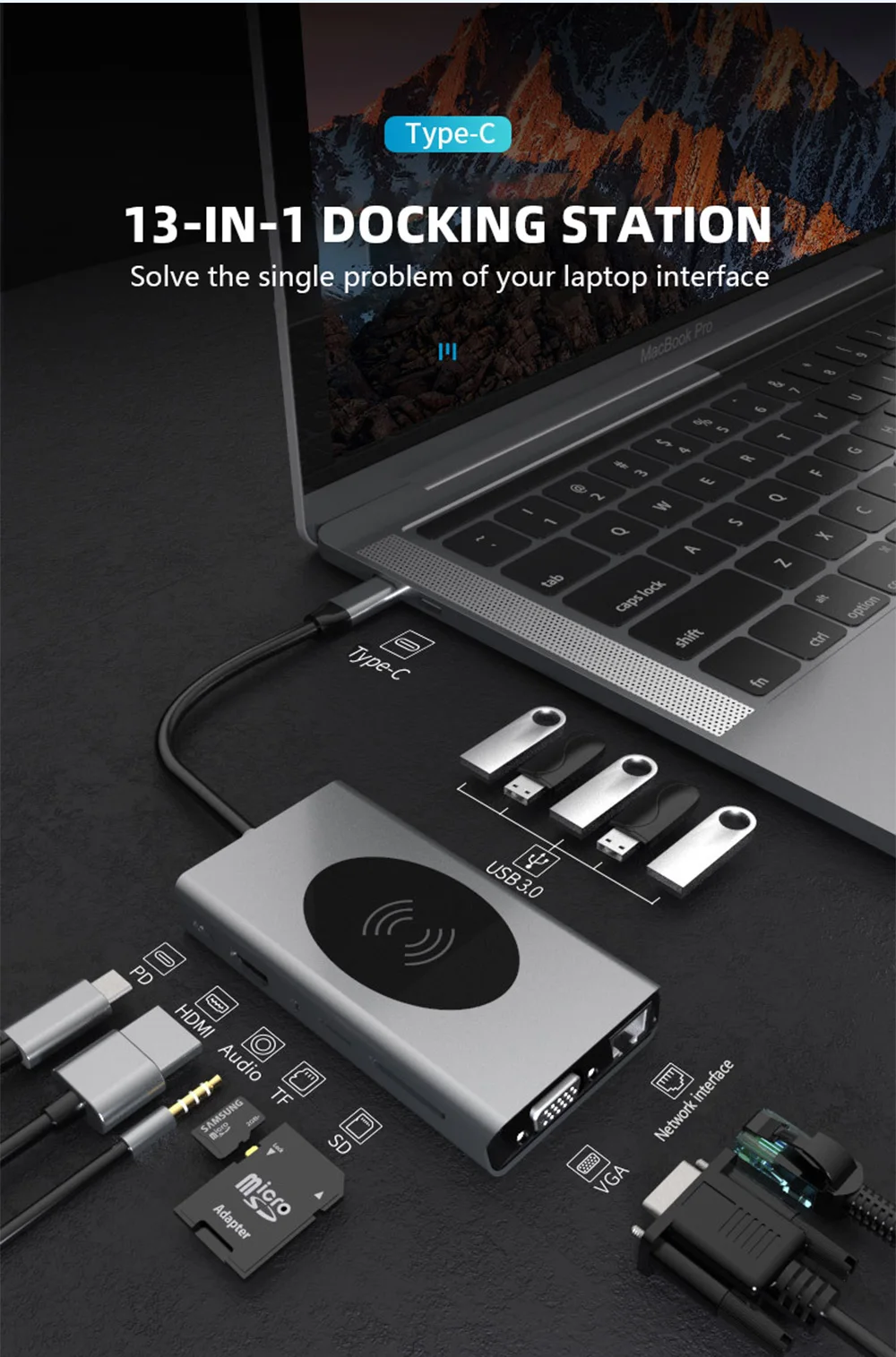 13 в 1 USB-C концентратор Беспроводной зарядный адаптер мульти Тип ...