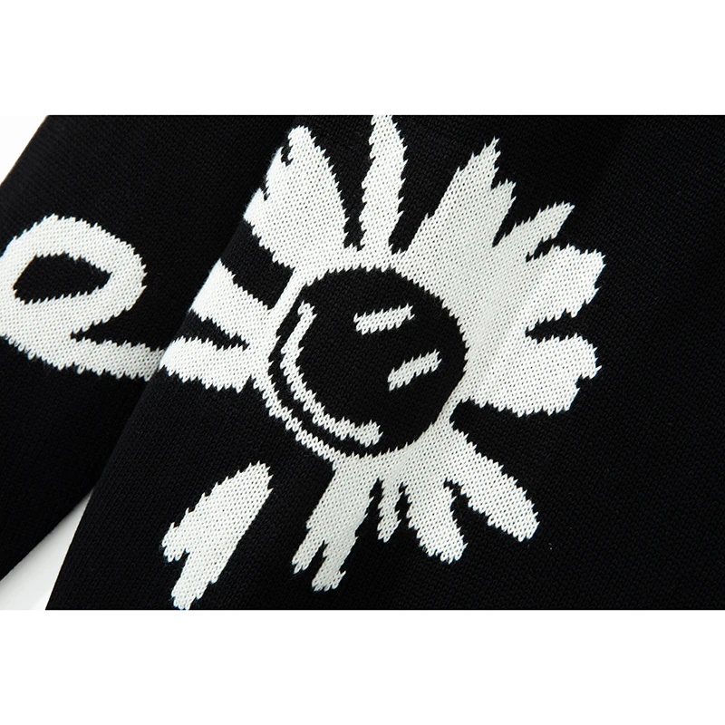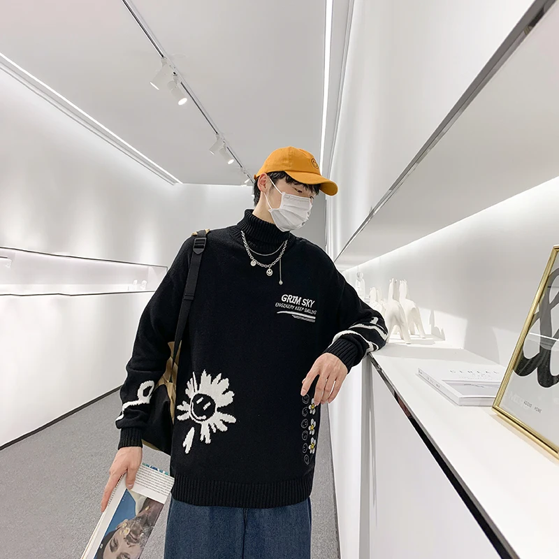 Мужской кардиган GlacialWhale, вязаный мужской зимний свитер с цветочным принтом, мужской повседневный негабаритный свитер с высоким воротом, черный свитер для мужчин