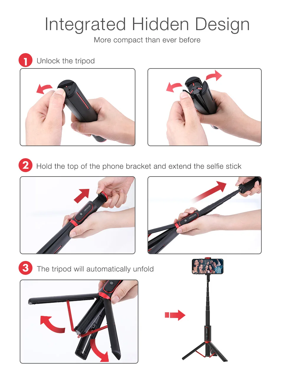 Интегрированный скрытый дизайнБолее компактный, чем когда-либо ранее. Вы можете использовать селфи-палку при съемке автопортретов в режиме ручки, записи видео и создания живого шоу в режиме штатива.Устойчивый Штатив-кронштейнВыдвижной, устойчивый и прочный Алюминиевый материал штатива, который может сложить до 15 кг.Съемный и Перезаряжаемый мини-пульт50 мА • ч, высокоемкая батарея дает вам 40 рабочих часов и 20000 подряд фото на одной зарядке.Светильник стабильныйИзготовленный из алюминиевого сплава и резины, BS10 отличается легким весом и держится в руках.Штатив также имеет резиновую поддержку для дополнительной стабильности.Гарантия 12 месяцевМы верим в наши продукты, и мы вернем их всем с 12 месяцев гарантии. Вы также можете связаться с нами в любое время для дружественной и полезной поддержки продукта.