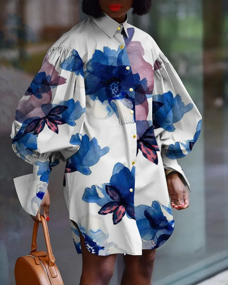 Женское платье-рубашка с рукавами-фонариками, повседневное Свободно...
