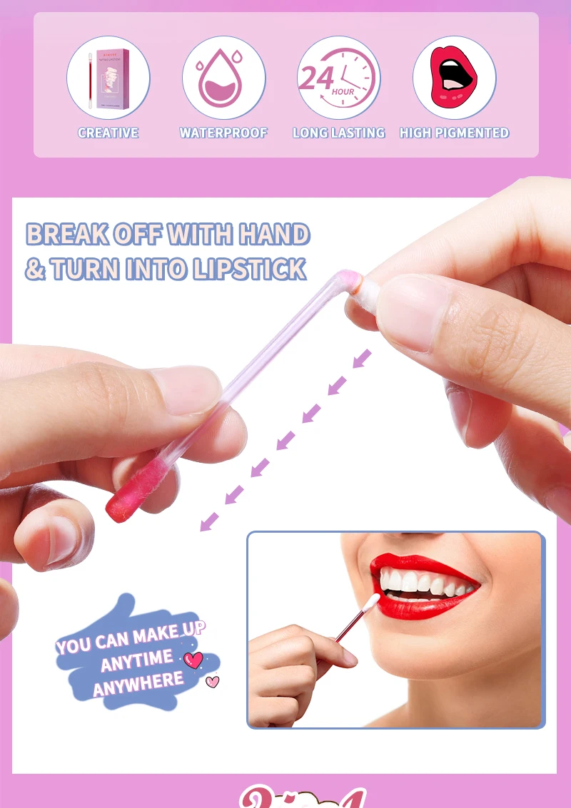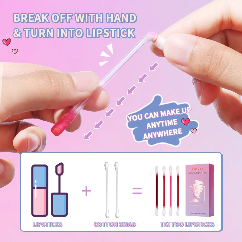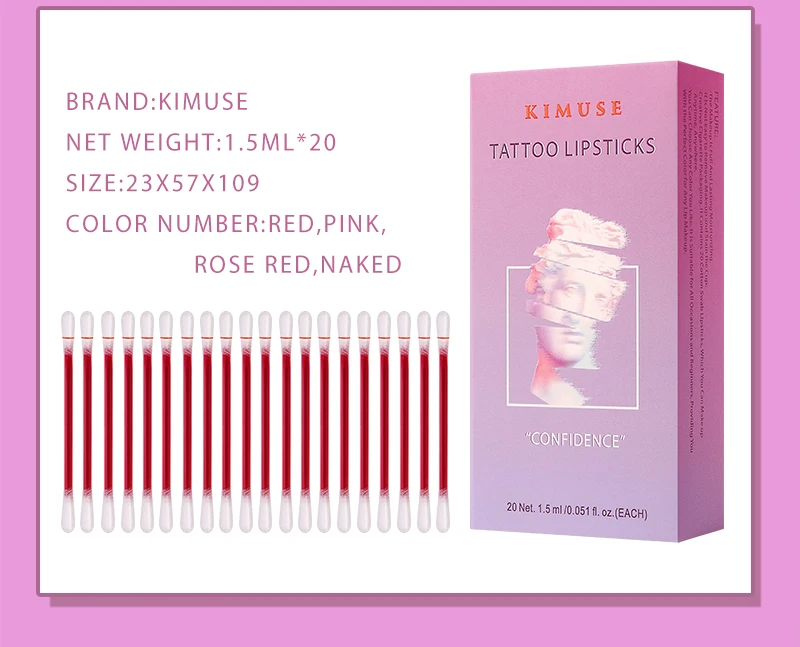 Помады для татуажа KIMUSE шелковистые, деликатные, элегантные и светильник. Подходят для различных случаев в любое время года. Губная помада Kim use Tattoo разработана как двусторонняя, вы можете использовать оба конца помады.