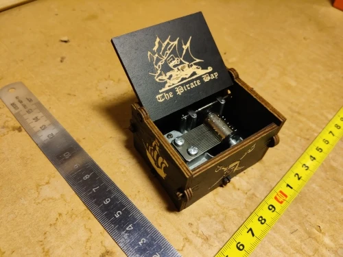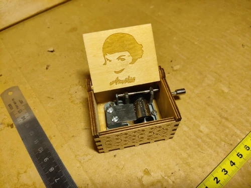 2. Музыкальная шкатулка приклеивается клеем. Внутри коробки есть следы клея.