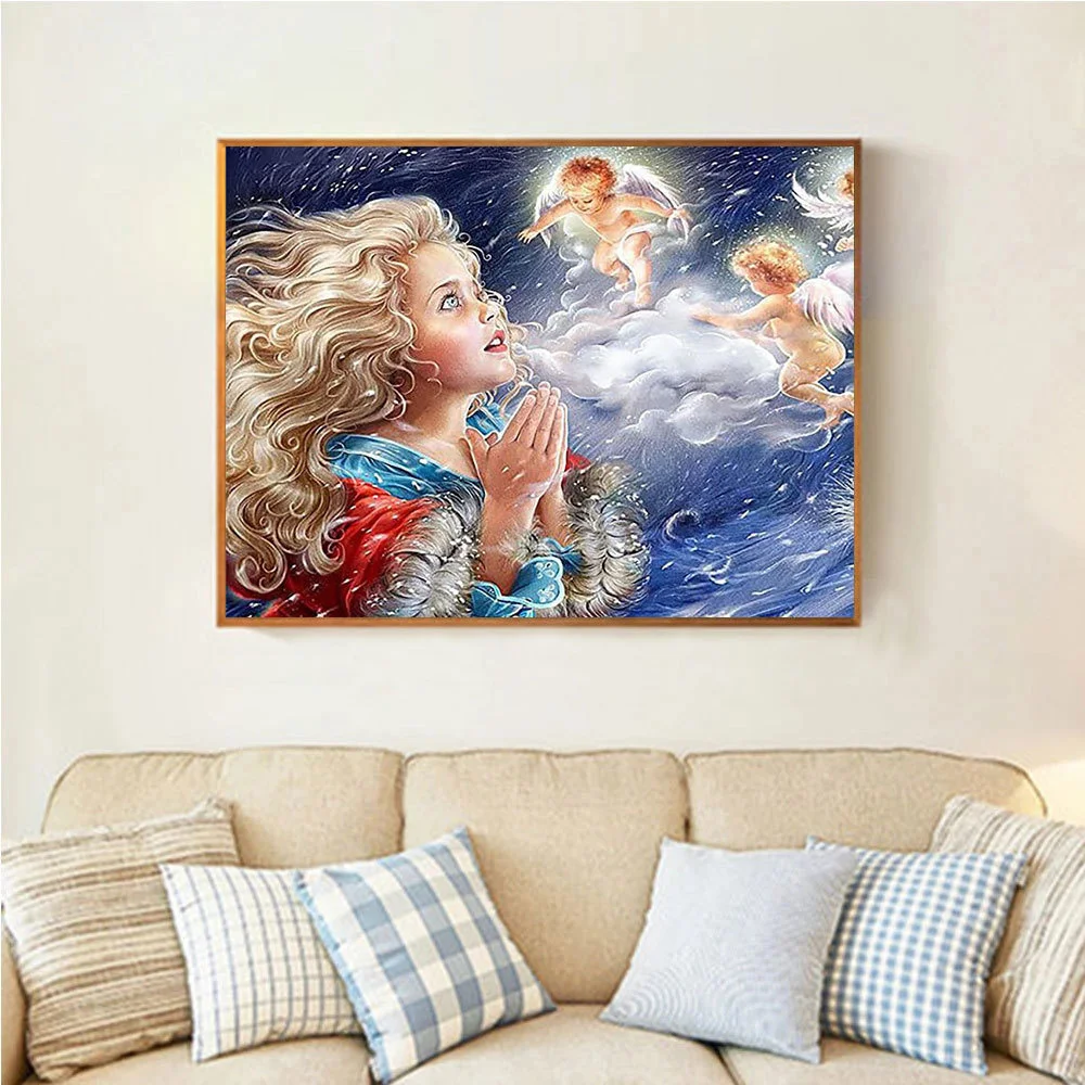 HUACAN DIY вышитый бриллиантами Ангел Girl Diamond живопись портрет из мозаики Стразы