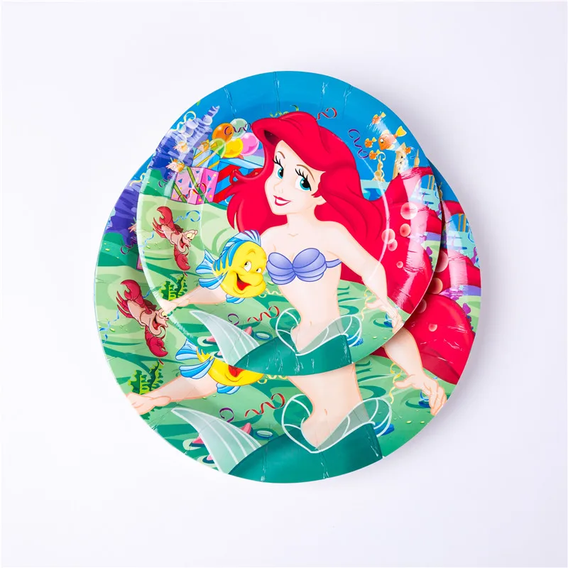 Набор посуды для маленькой Русалочки принцессы Ариэль, украшения для дня рождения, бумажная тарелка, салфетка, чашка, скатерть, принадлежности для вечеринок