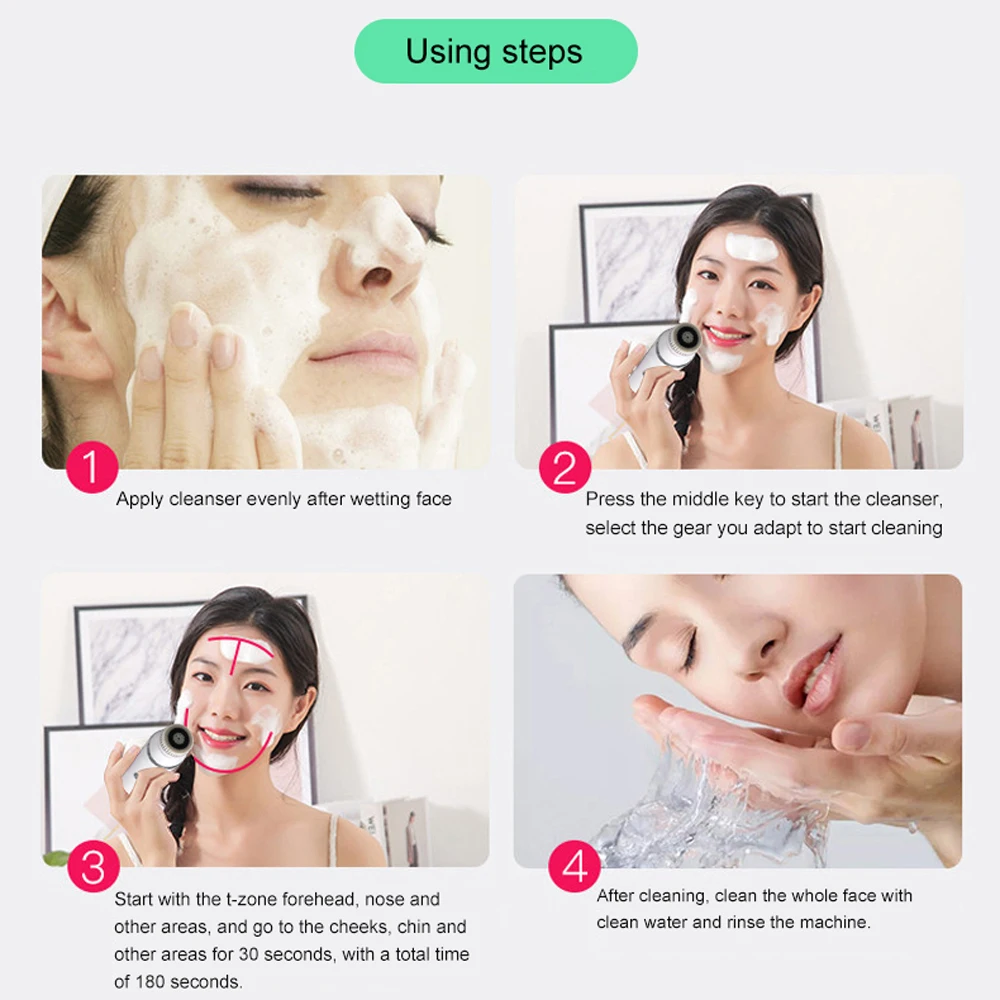 4 в 1 электрическая щетка для глубокого очищения лица, вращающаяся щетка для очищения пор, устройство для удаления косметики, водонепроницаемый массажер для лица, уход за кожей