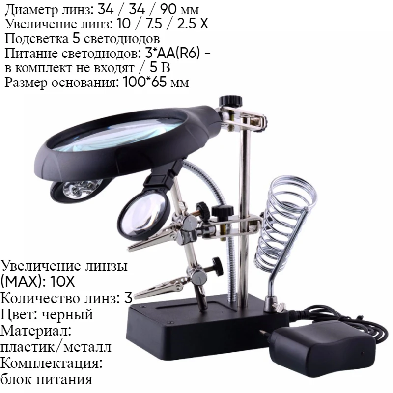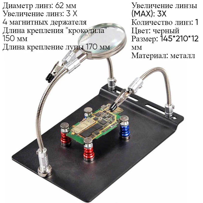 Держатель печатной платы для пайки Увеличение 3X 4.5X 6X 8X 10X 14X Количество линз 1234 Подсветка