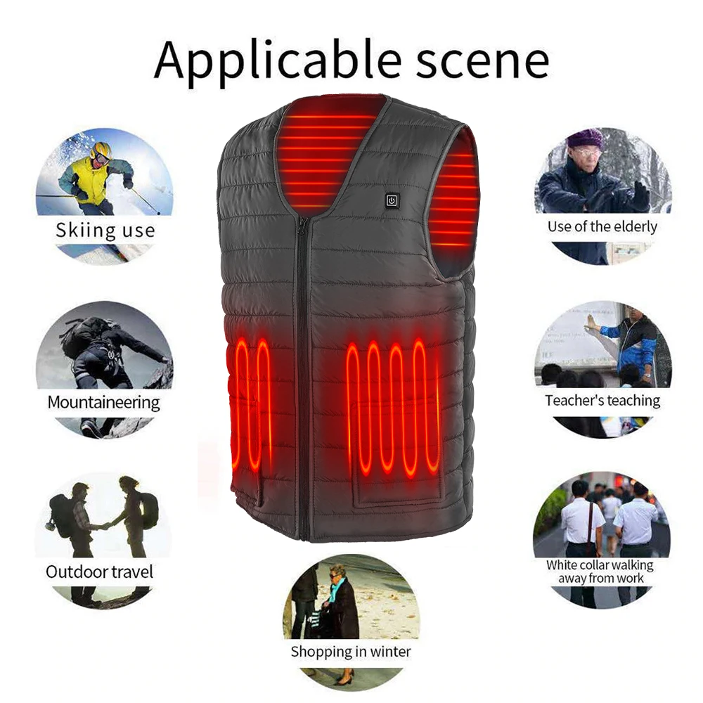 5. Широкое применение: Этот жилет с подогревом идеально подходит для катания на лыжах, зимней рыбалки, катания на горных велосипедах, велоспорта, кемпинга, снежного треккинга, охоты, активного отдыха на открытом воздухе, зимних улиц, повседневного офиса и многого другого.