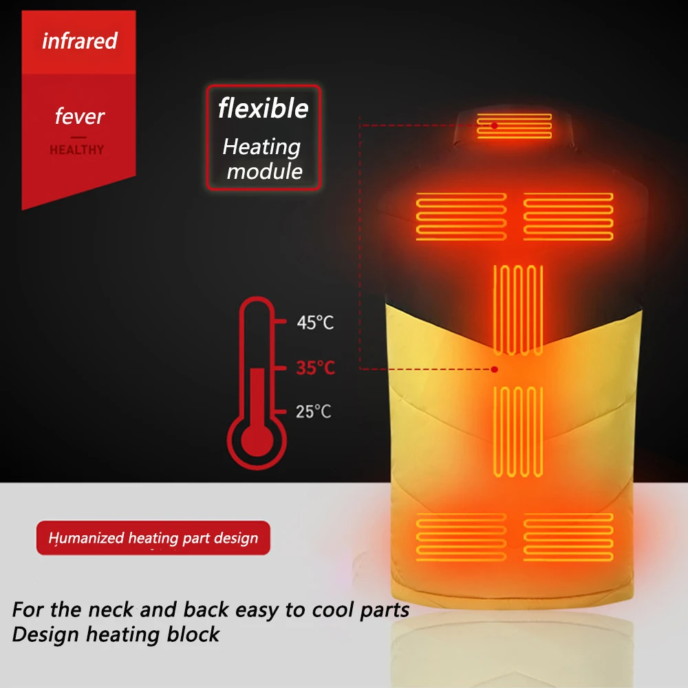Жилет с электрическим подогревом для мужчин и женщин, зимняя теплая куртка с умным USB подогревом для отдыха на открытом воздухе, походов, лыж, 11 областей