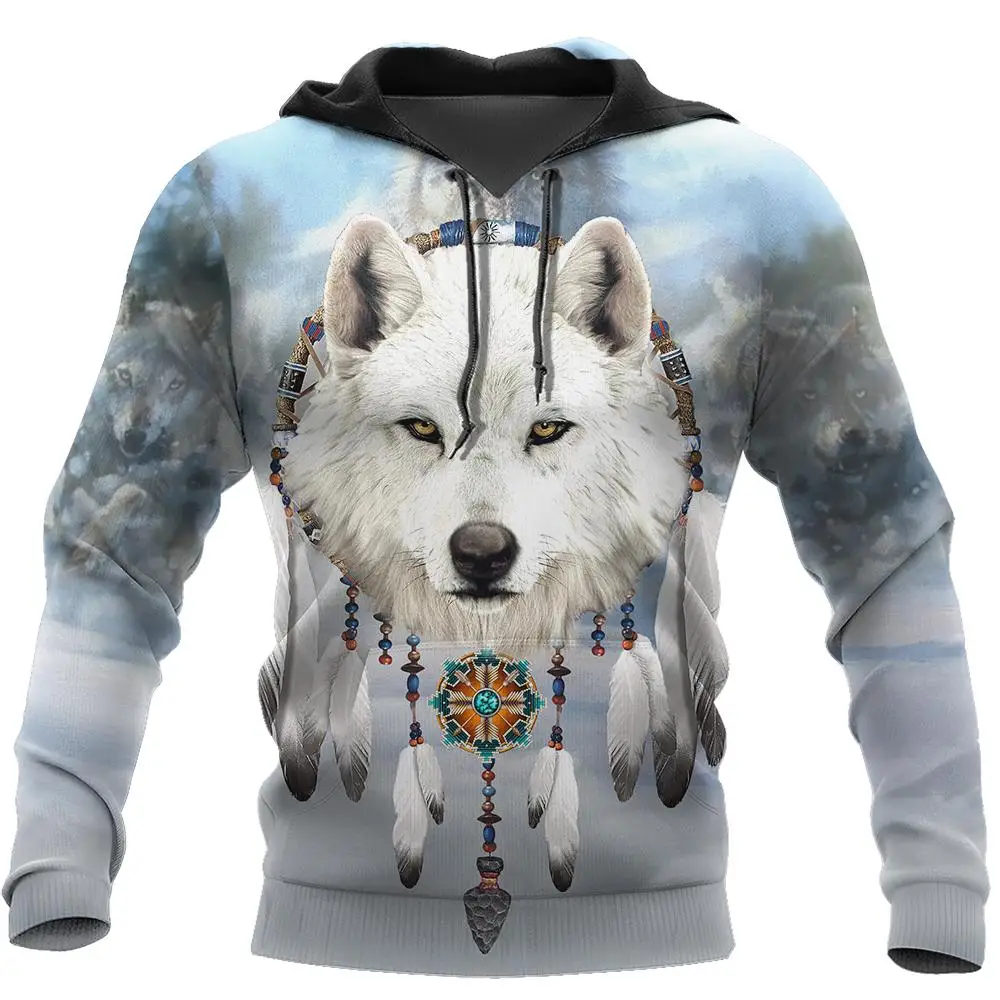 Родной дух волка 3D все напечатано, модные толстовки с капюшоном му...