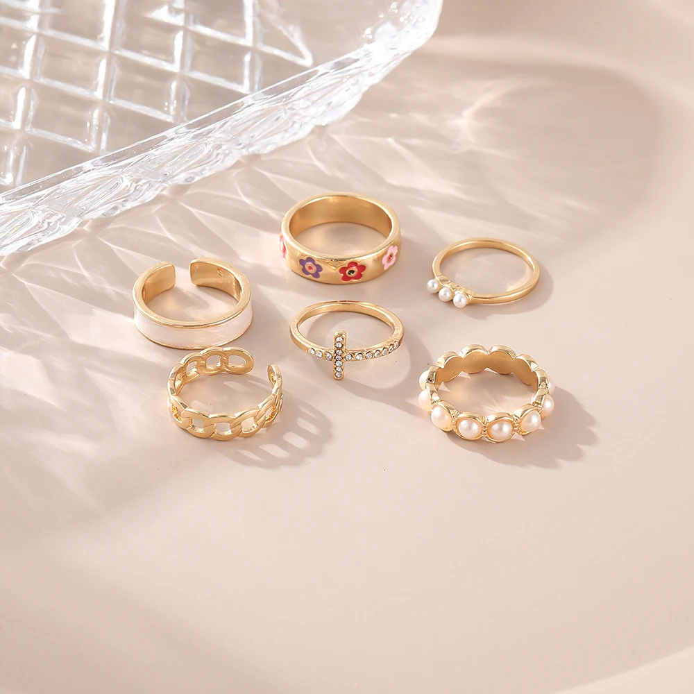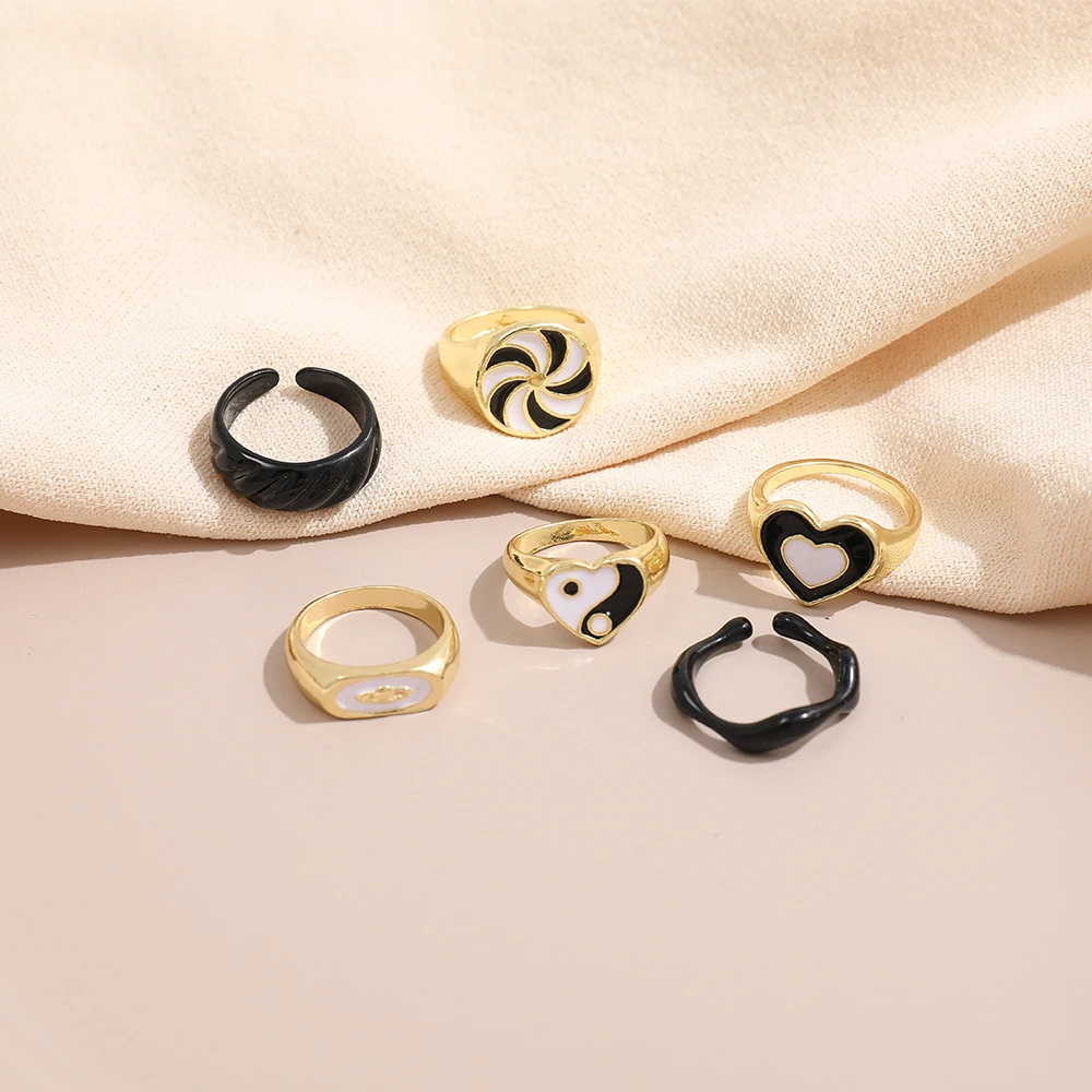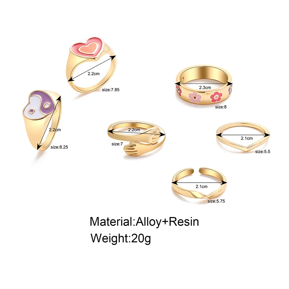 6 шт.компл. белые кольца для женщин в стиле панк Модные Винтажные красочные кольца в форме сердца Инь-Янь маленькие кольца в форме маргаритки с цветком парные кольца для вечеринки