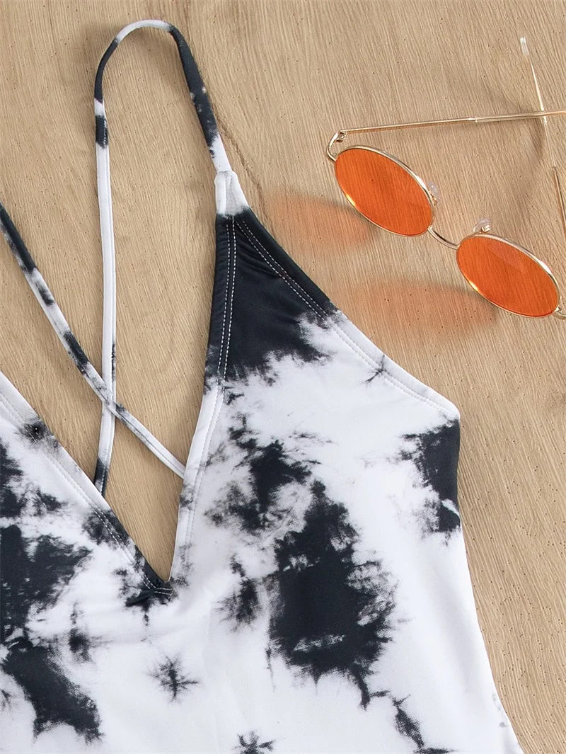 Женский слитный купальник, с перекрестной завязкой, с принтом тай-Д...