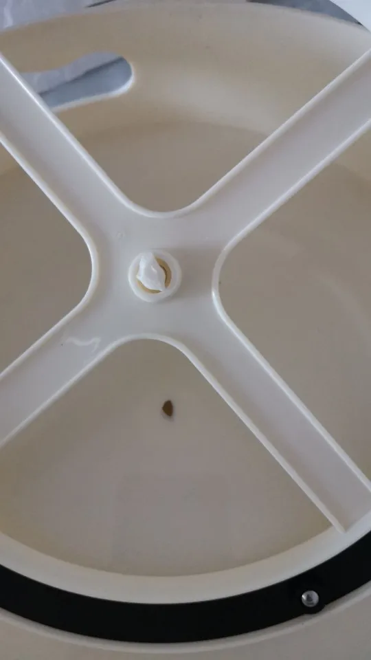Он пришел вмятин и не вращается, поэтому этот предмет теперь бесполезен. Я могу выбросить его в мусорное ведро. И цвет тоже не тот. Он имеет желтый оттенок, выглядит как будто он испачканный и старый.