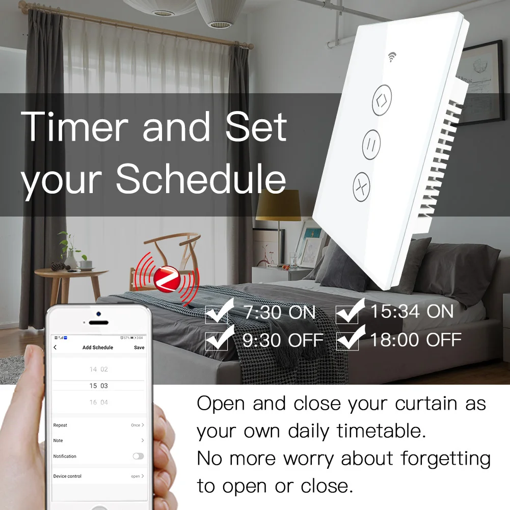 4. Подходит для различных видов штор, таких как оконные жалюзи/рольставни/жалюзи/рольставни. Установите умный переключатель штор во многих местах, таких как офис/кабинет/спальня/гостиная и т. д., даже Управляйте тентом во дворе.