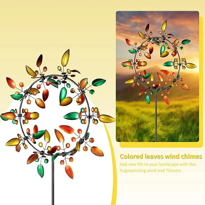 Металлическая ветряная мельница радужного цвета в форме листьев, цв...