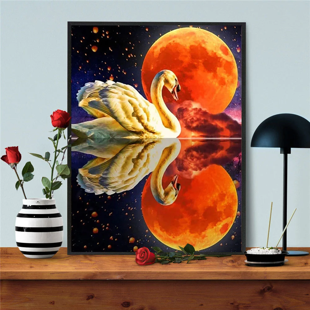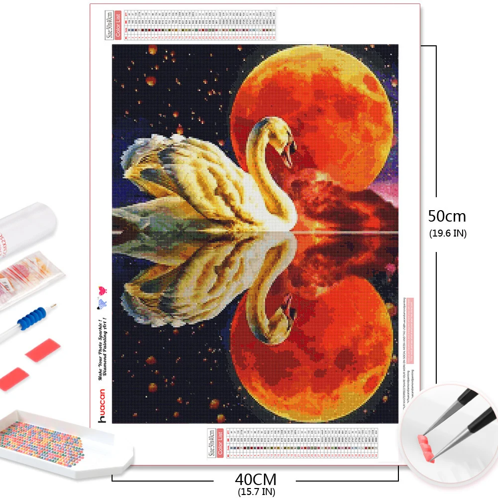 Алмазная мозаика HUACAN 5D сделай сам, живопись лебедя, луна, полная выкладка, квадратныекруглые наборы для вышивки, ручная работа