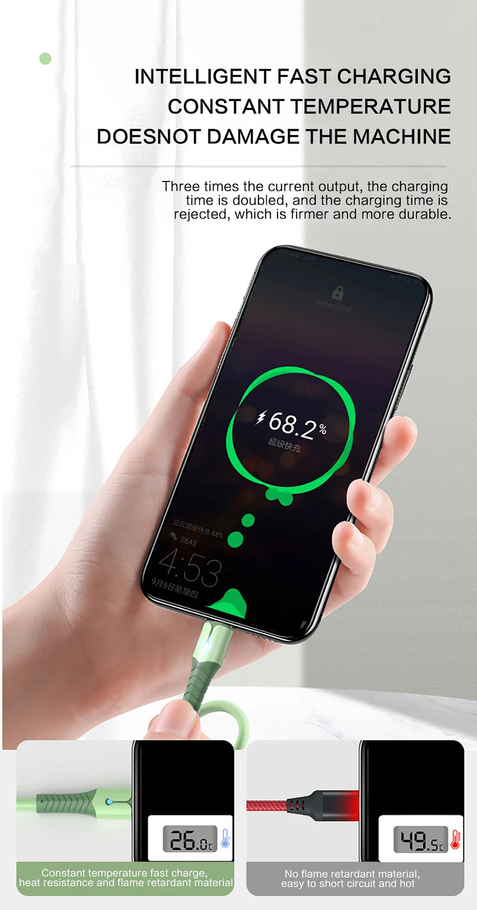 Жидкий Силикон 5A, Сверхбыстрая зарядка, кабель со светодиодной под...