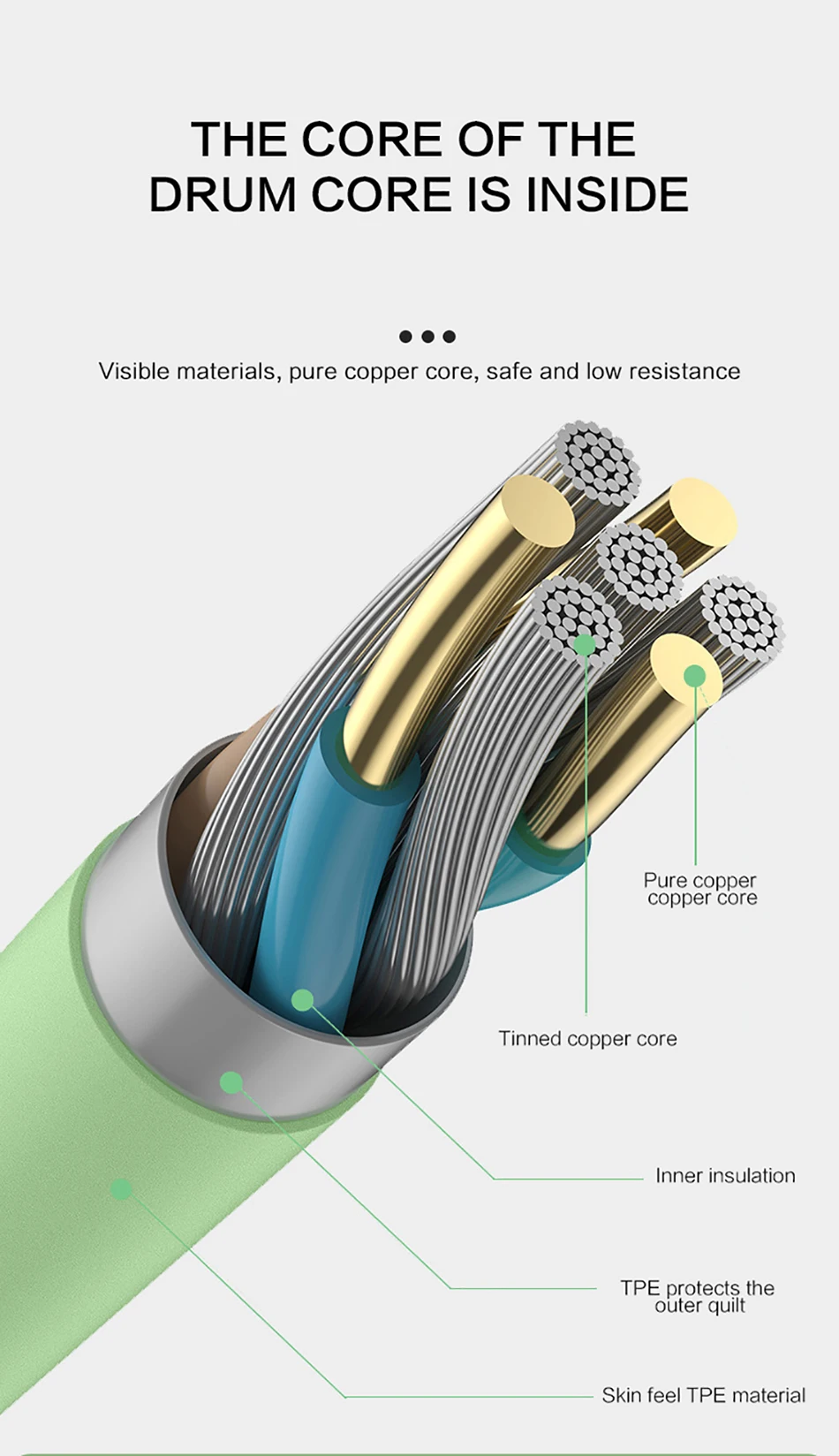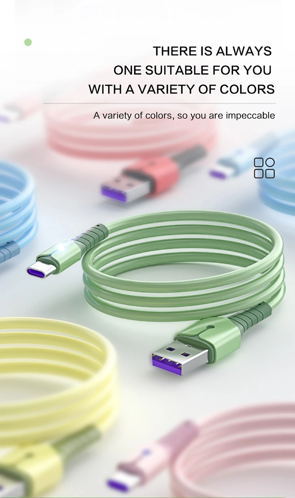 Кабель для быстрой зарядки 5 А из жидкого силикона с подсветкой, ка...