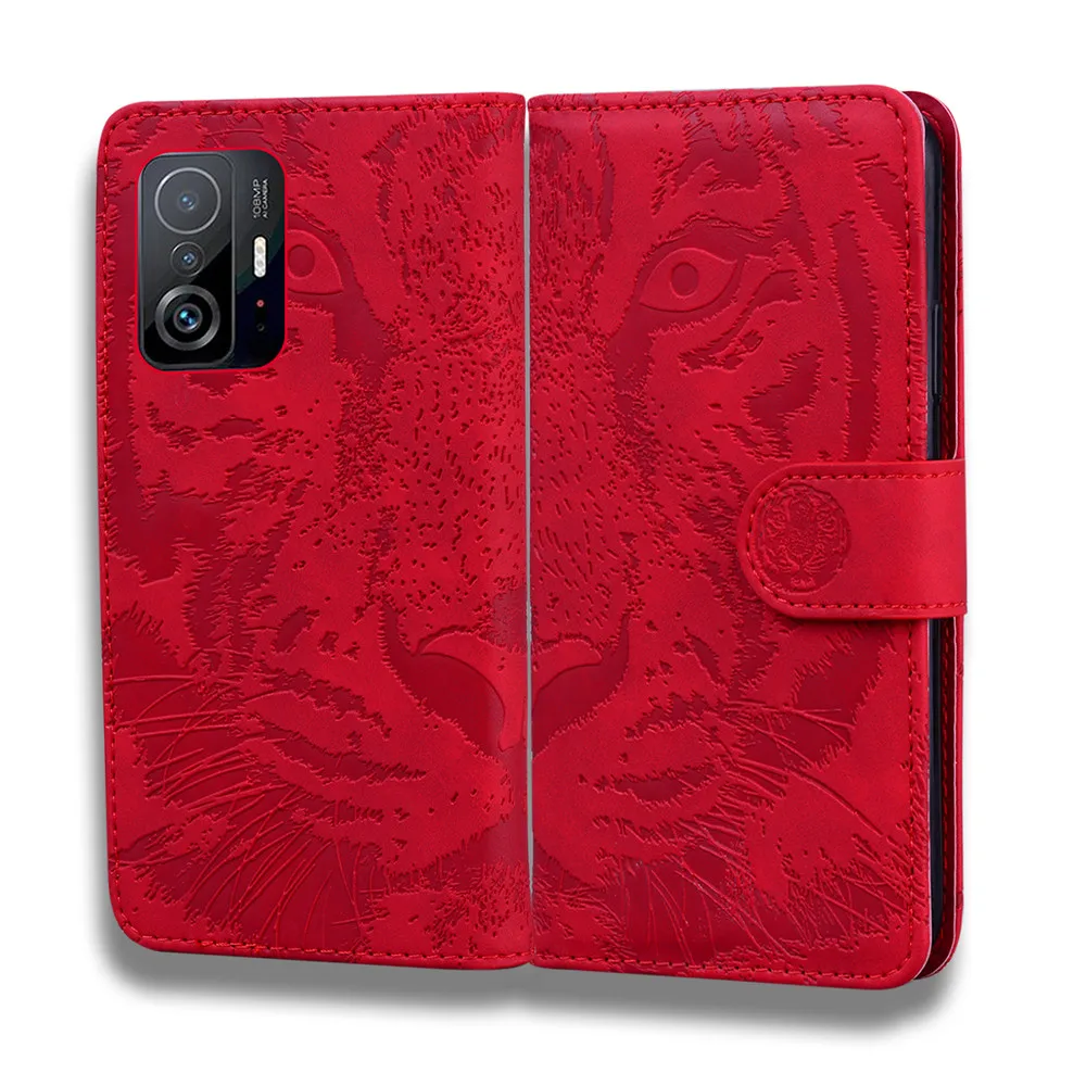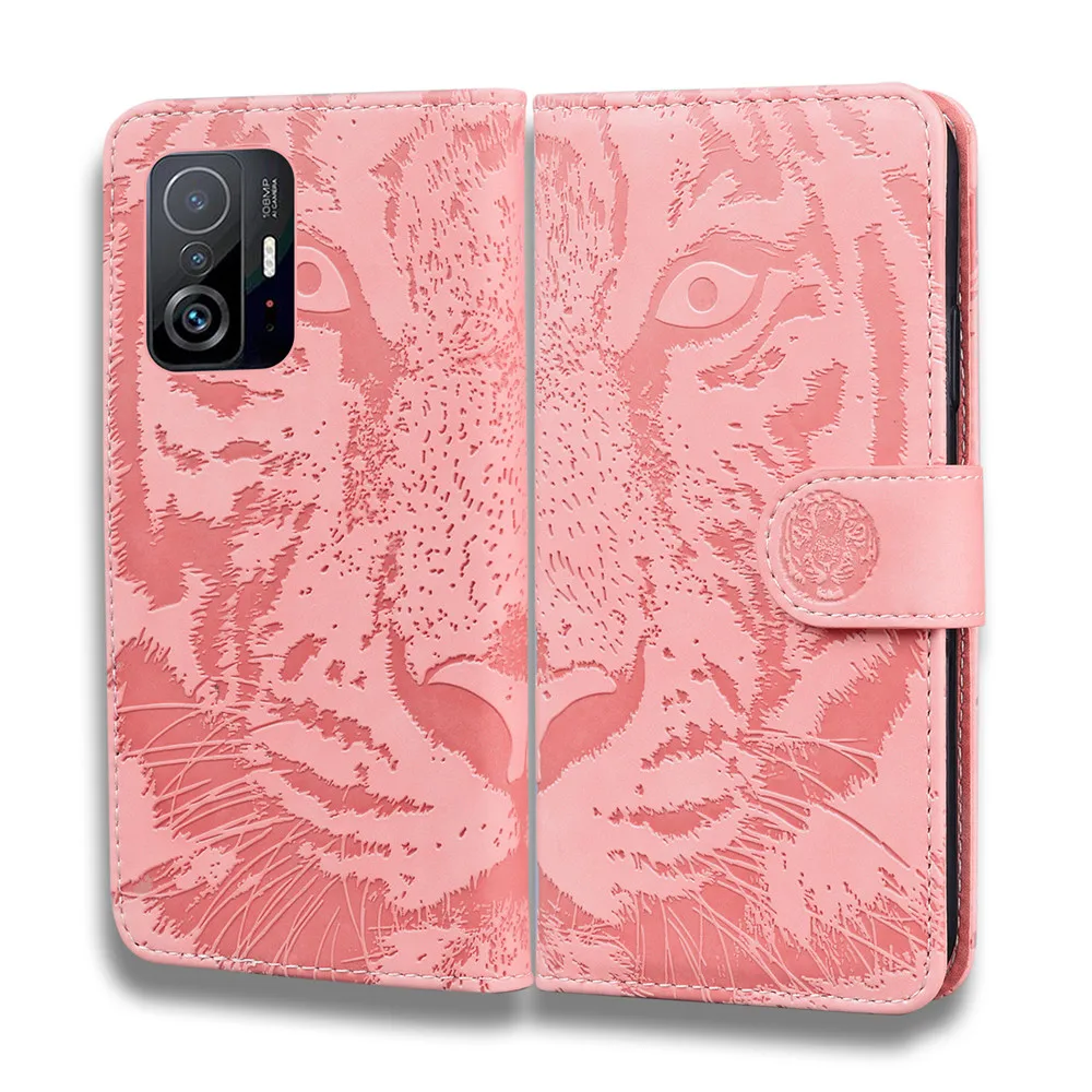 Кожаный магнитный чехол с тиснением Тигра для Xiaomi 11T Pro, флип-чехол с держателем для телефона, чехол с зажимом для Xiaomi 11T 11TPro coque
