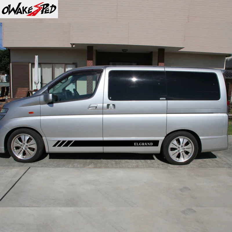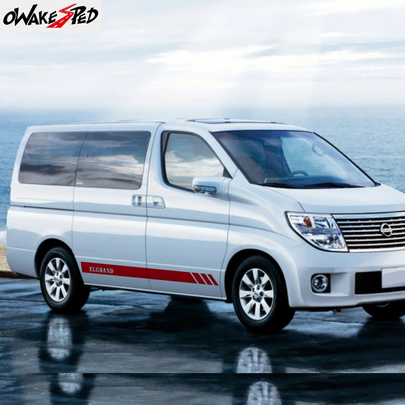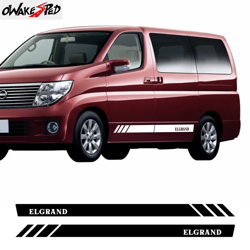 2 шт., Спортивная наклейка в полоску для автомобильной двери, боковая юбка, наклейка для Nissan Elgrand, авто Декор, виниловые наклейки, внешние аксессуары