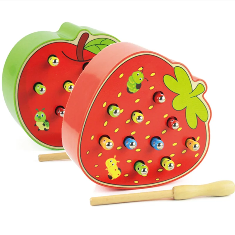 Детские деревянные игрушки Монтессори 3D головоломка для раннего детства развивающие игрушки Магнитные Клубничные яблоки ловят Червячные игры рождественские подарки