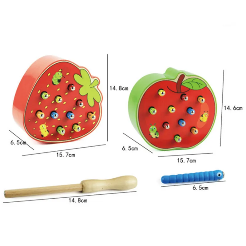 Feature3Magnetic Strawberry Apple Catch Worm Game