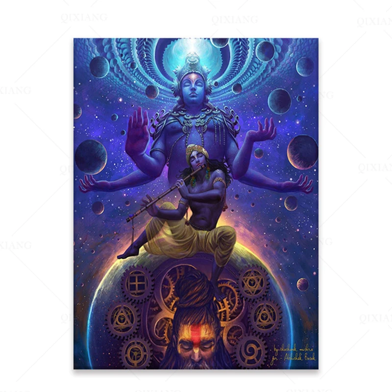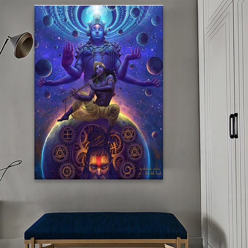 Настенный декор для гостиной, индийский Кришна, холст, настенное ис...