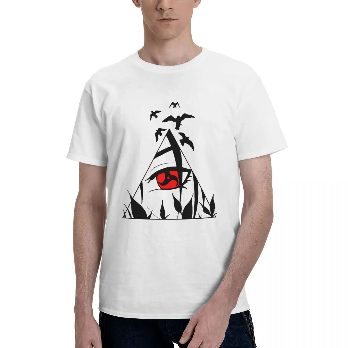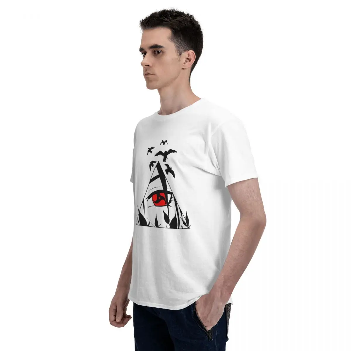 Футболка мужская с принтом Какаси, Героя Шаринган, из хлопка, с кру...