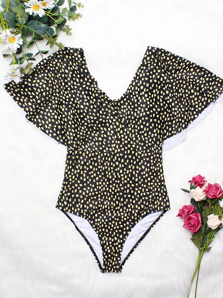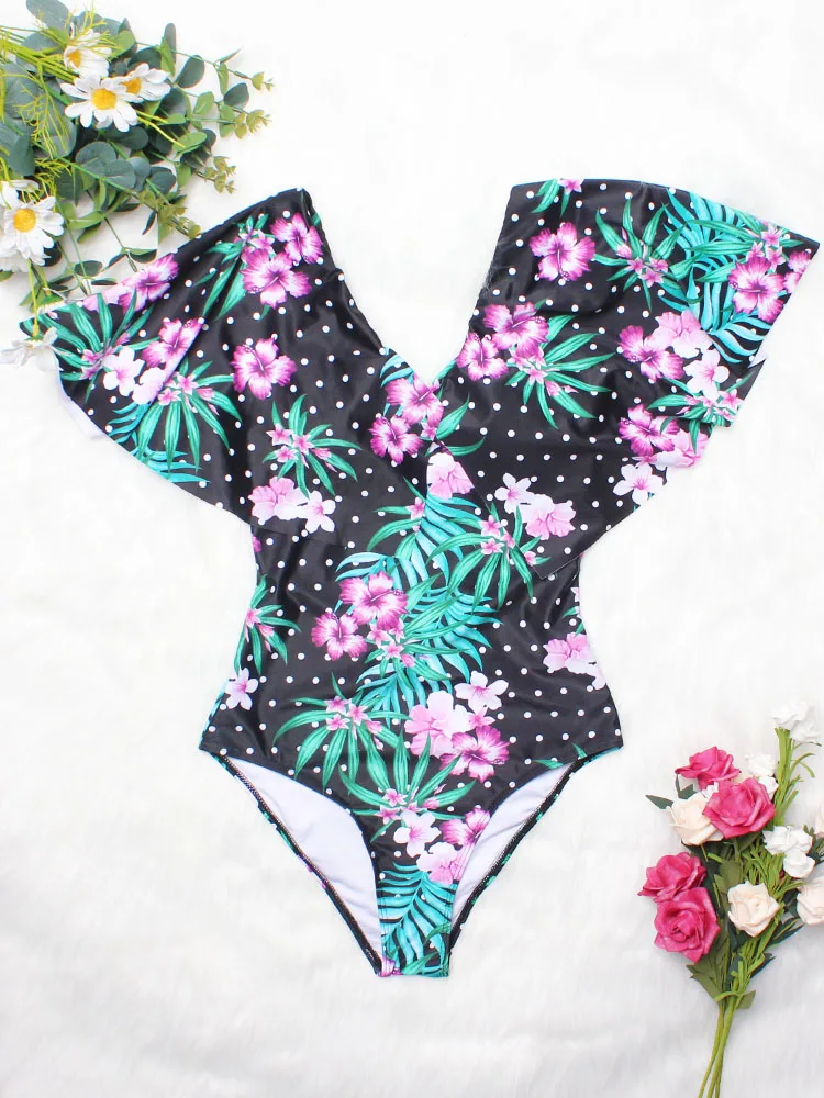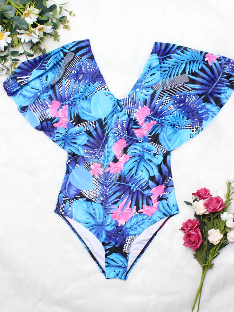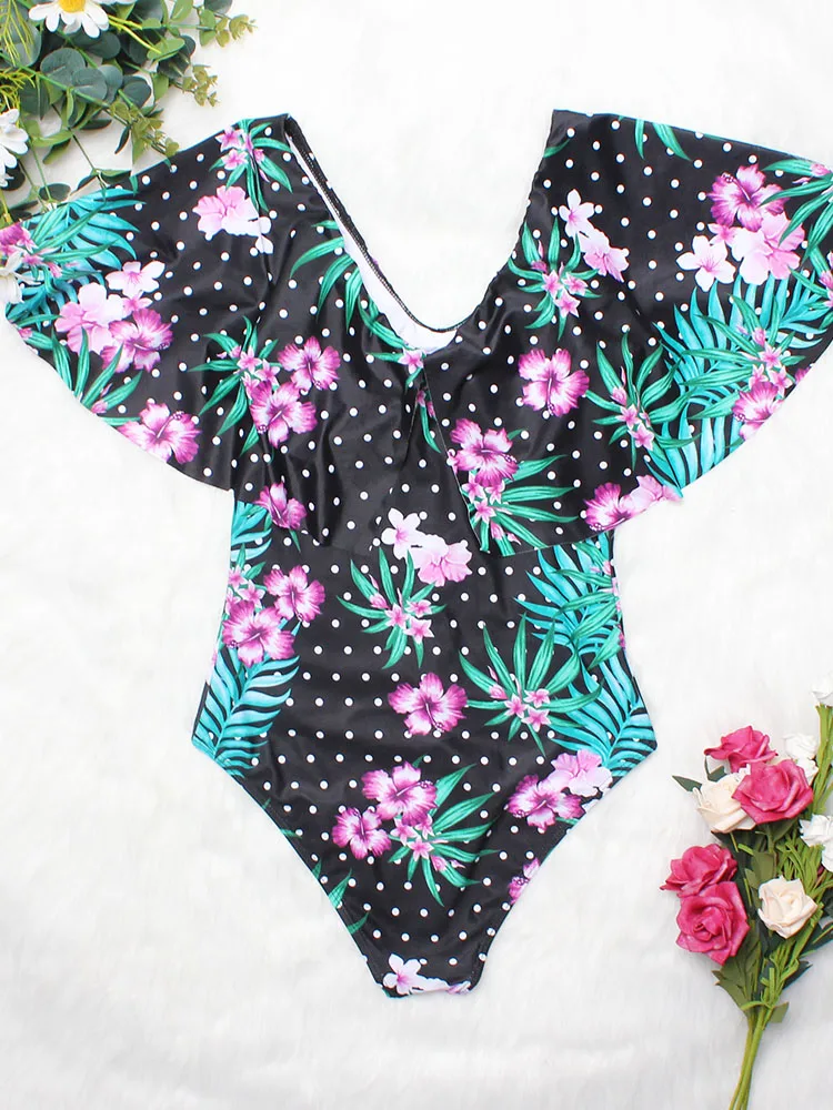 Женский слитный купальник большого размера с рукавом летучая мышь и низким вырезом купальник с принтом облегающий, закрывающий талию женский купальник